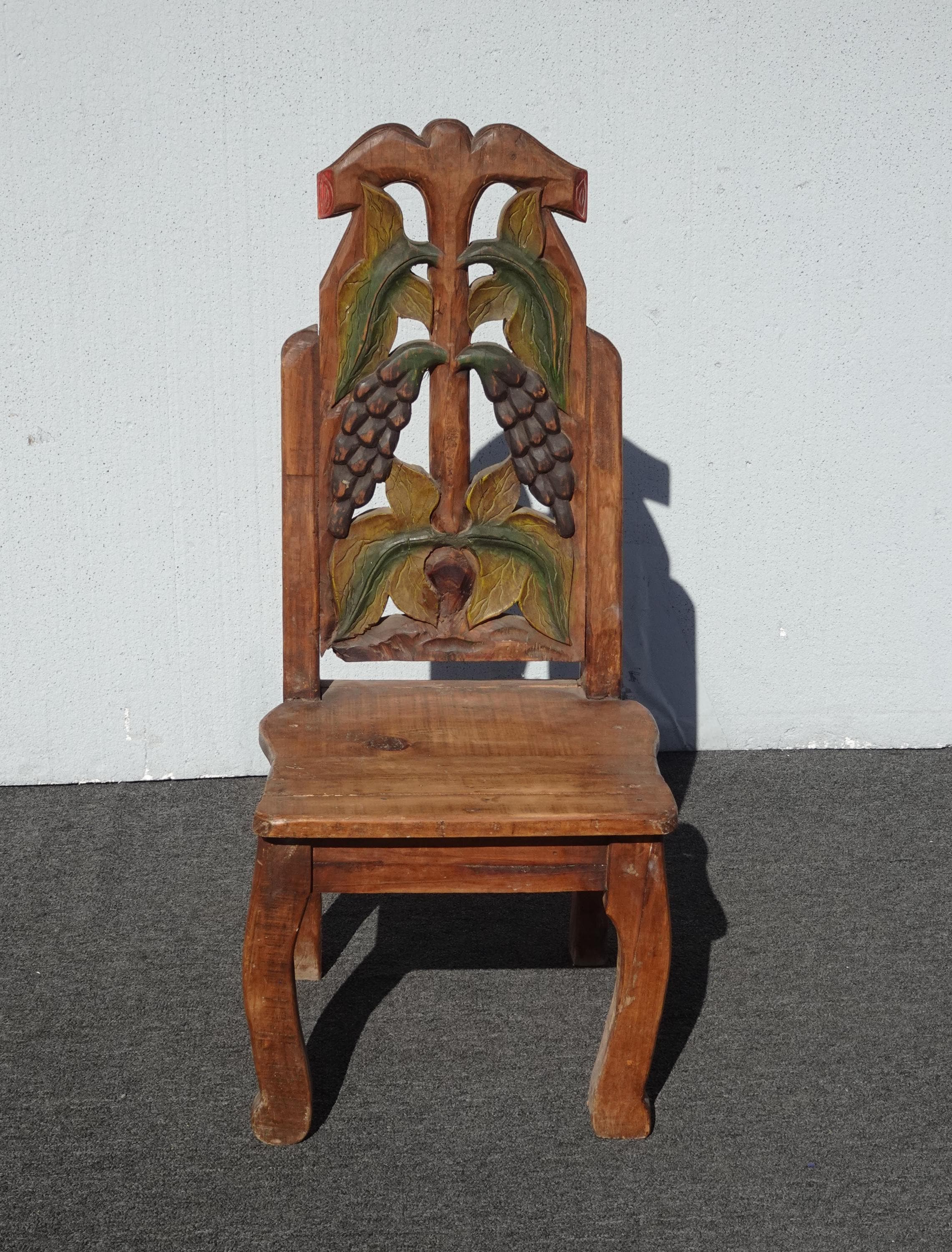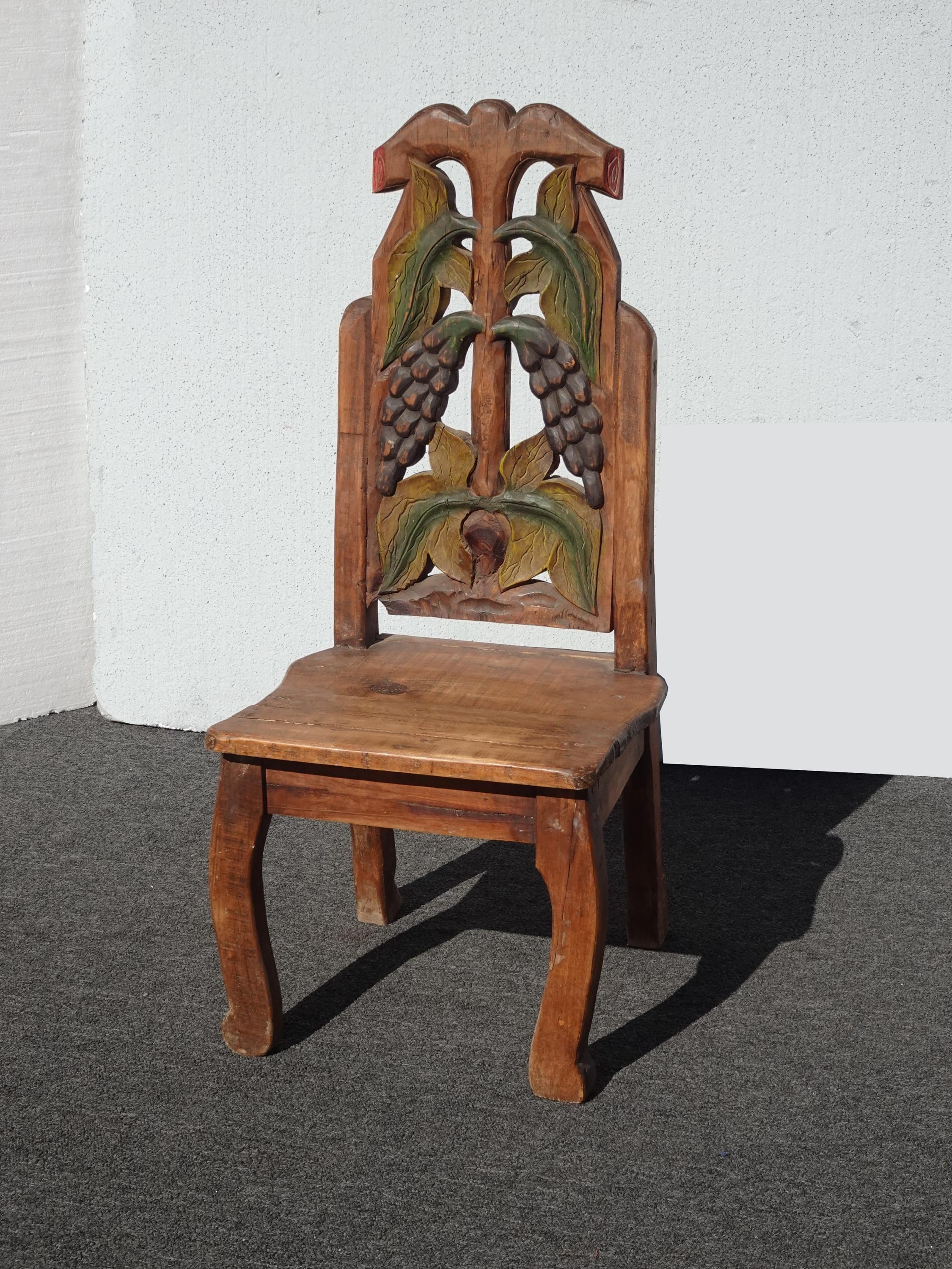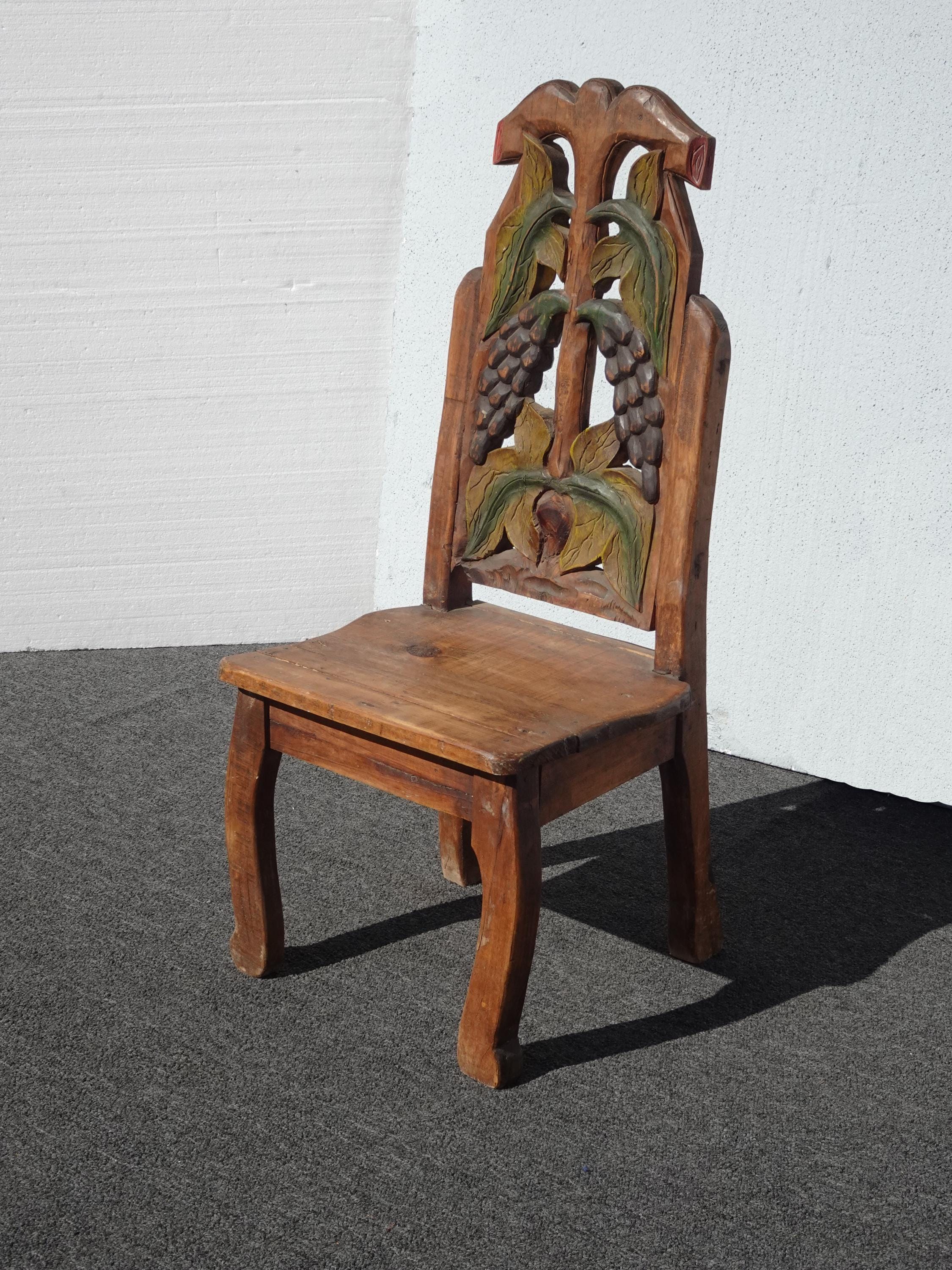 Vintage Rustic Country Style Side Chair w Carved Fruit Backrest