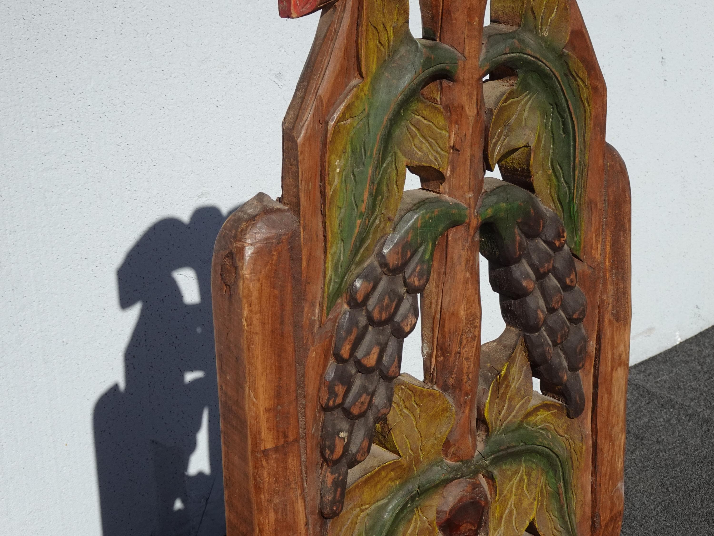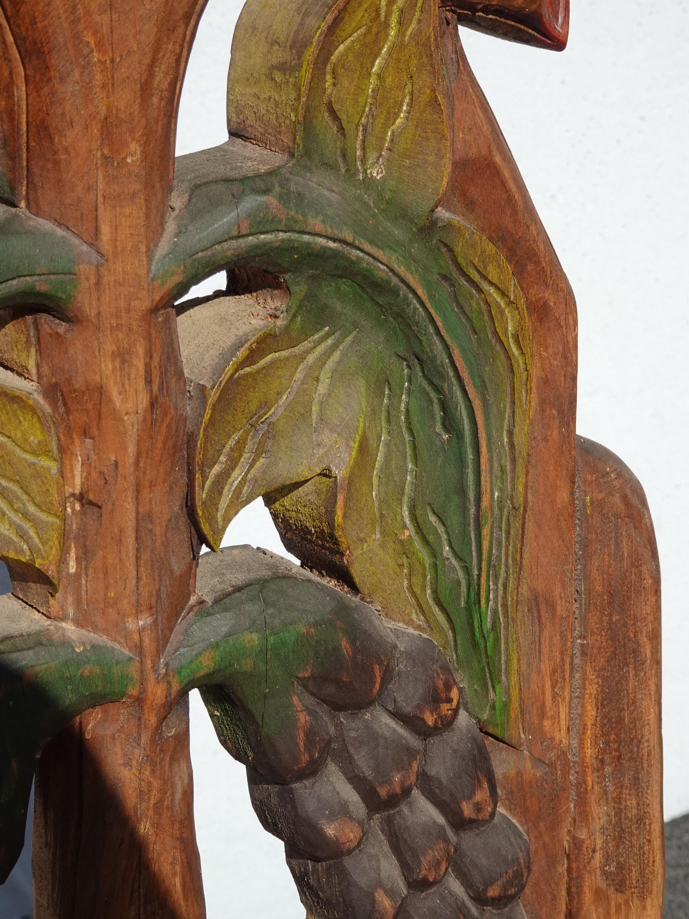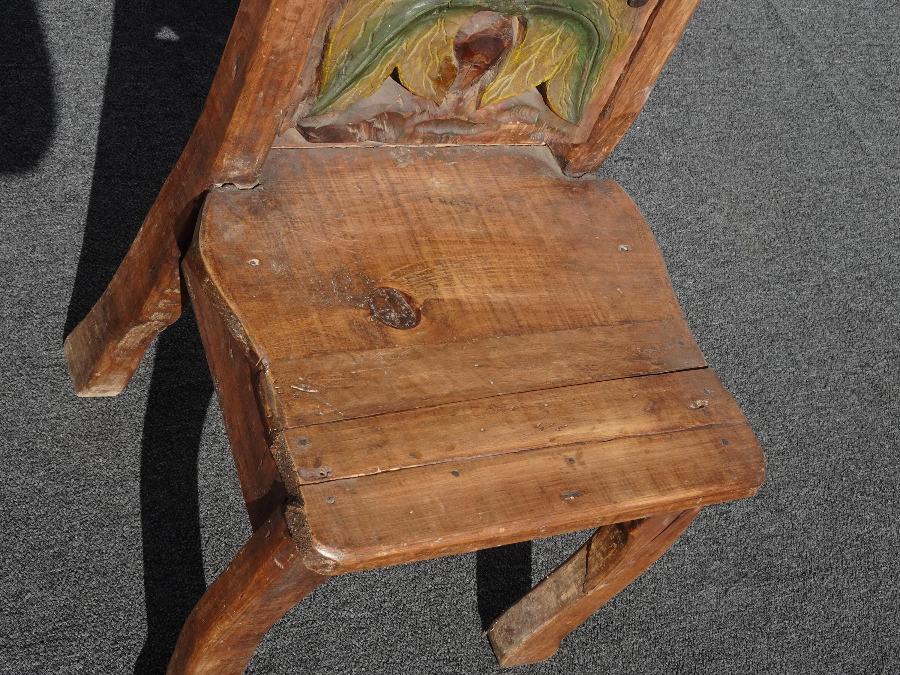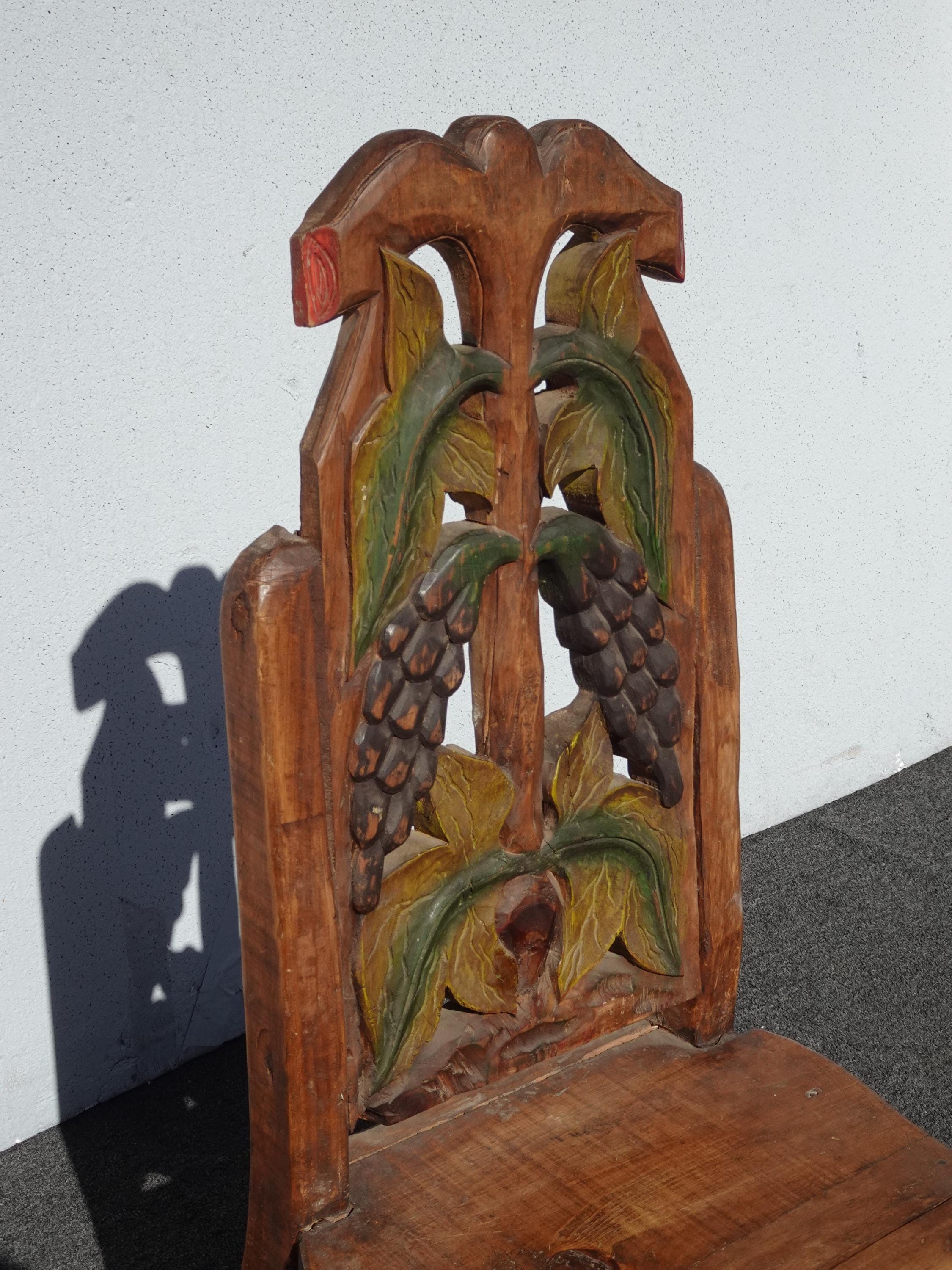 Vintage Rustic Country Style Side Chair w Carved Fruit Backrest