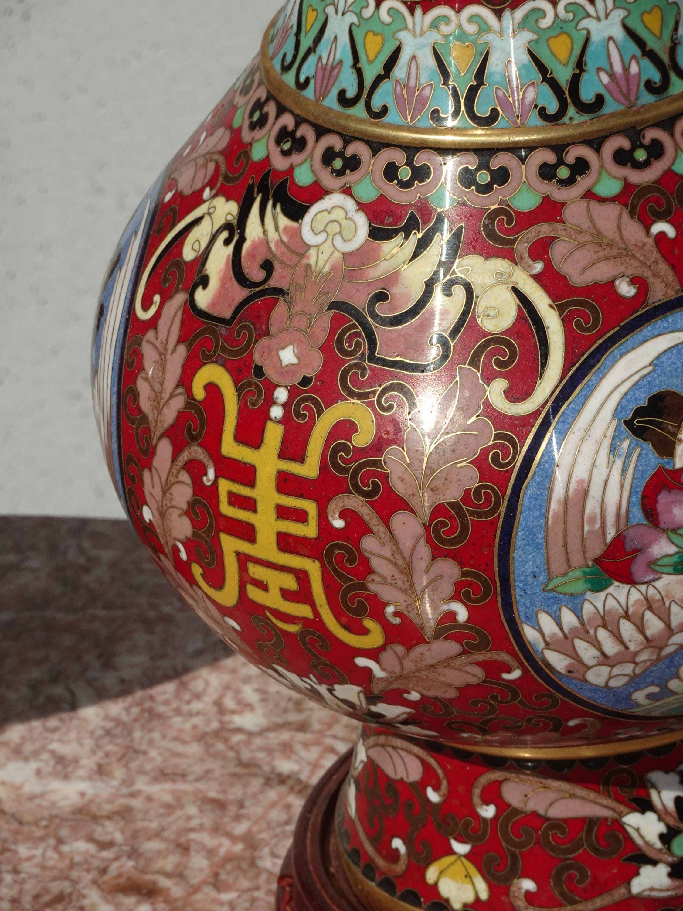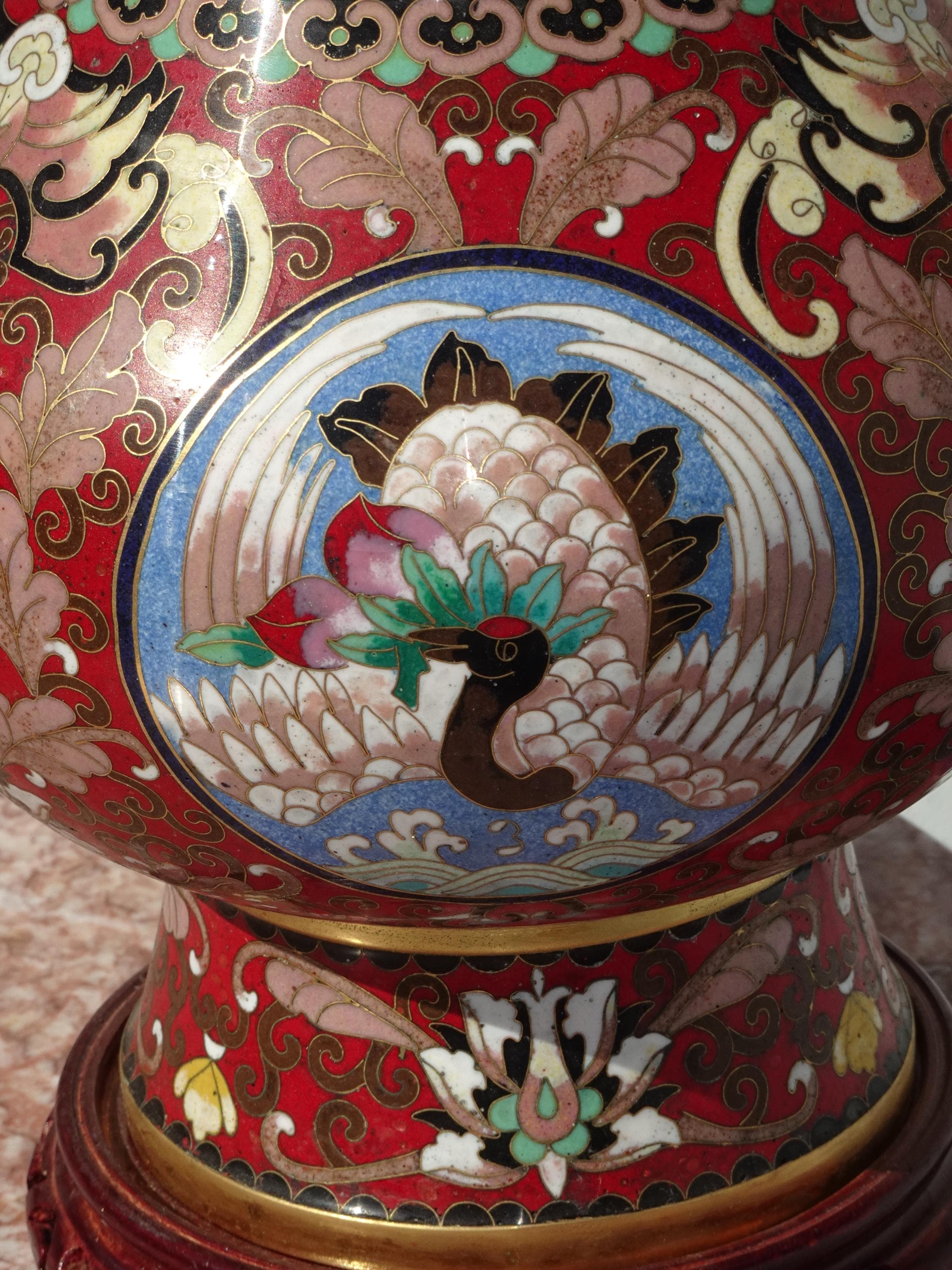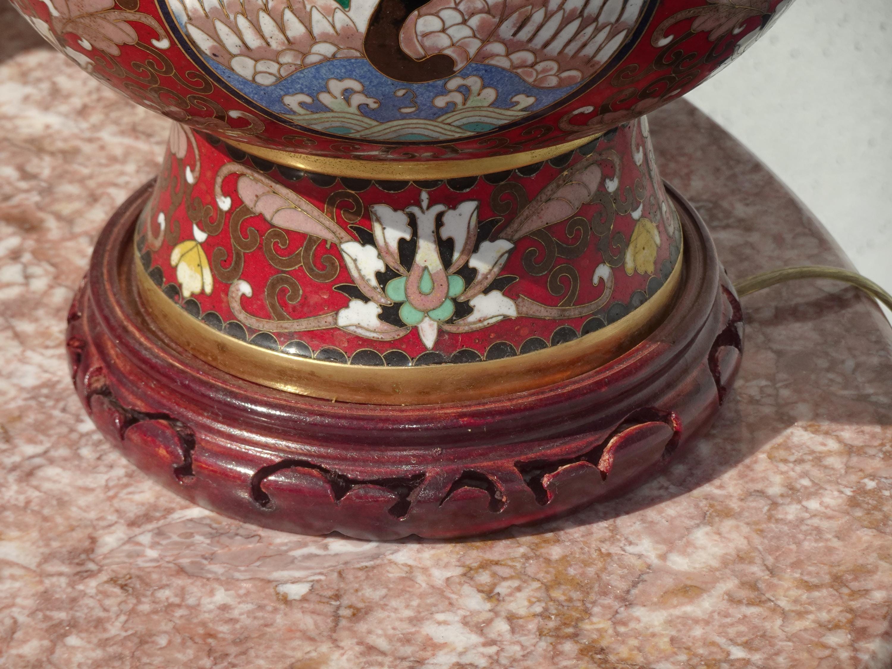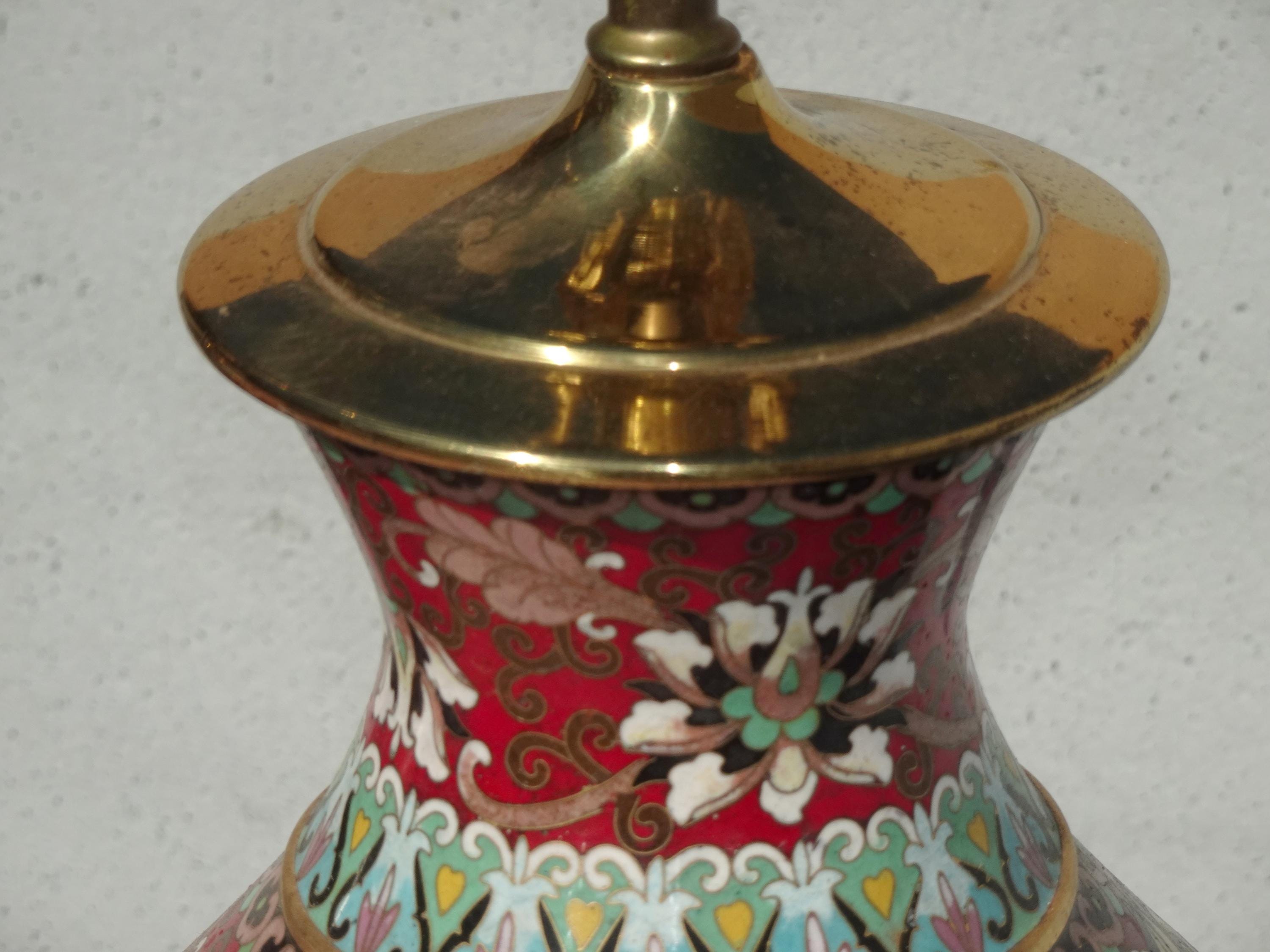 Pair of Vintage Asian Chinoiserie Cloisonne Red Table Lamps