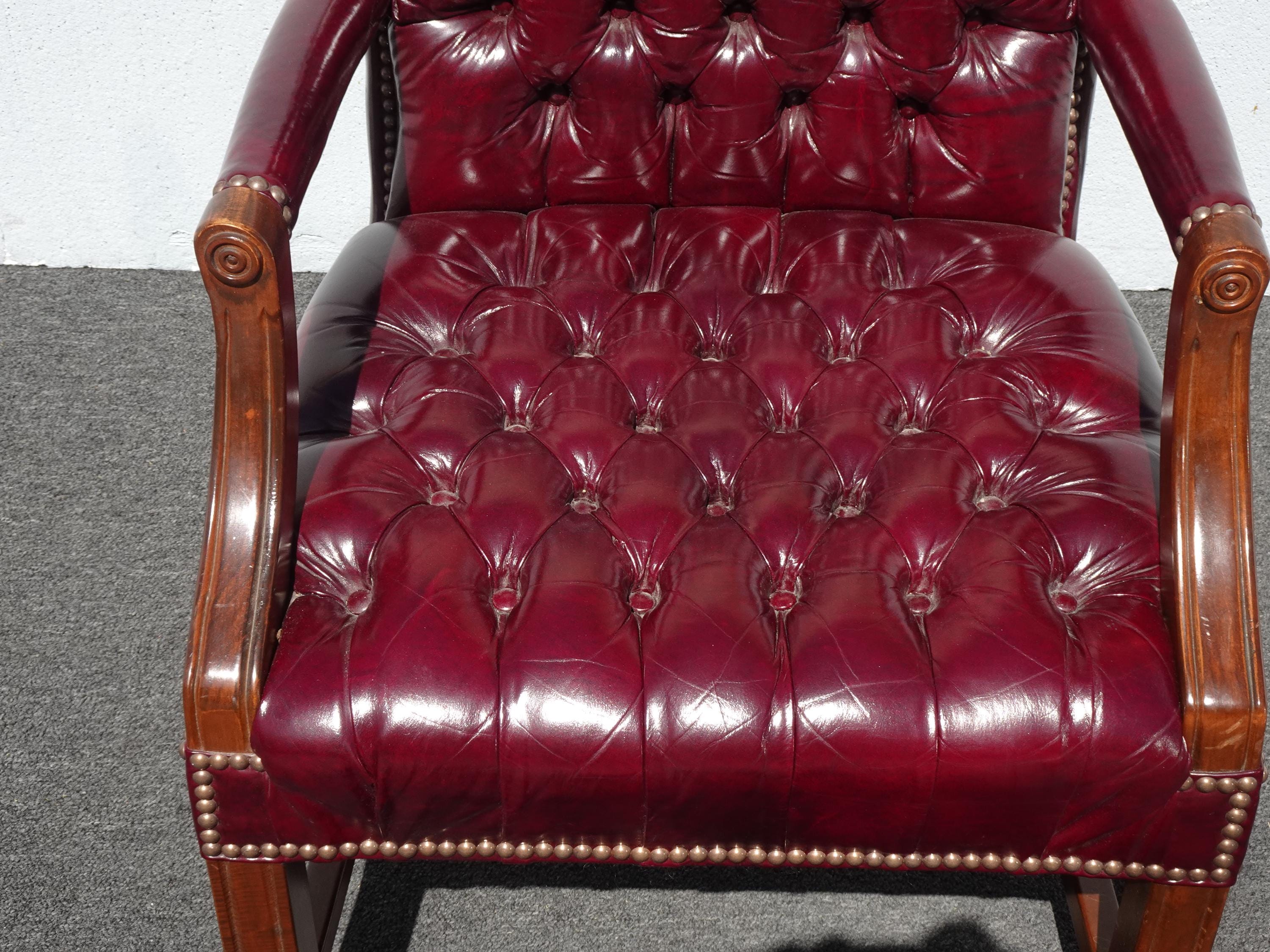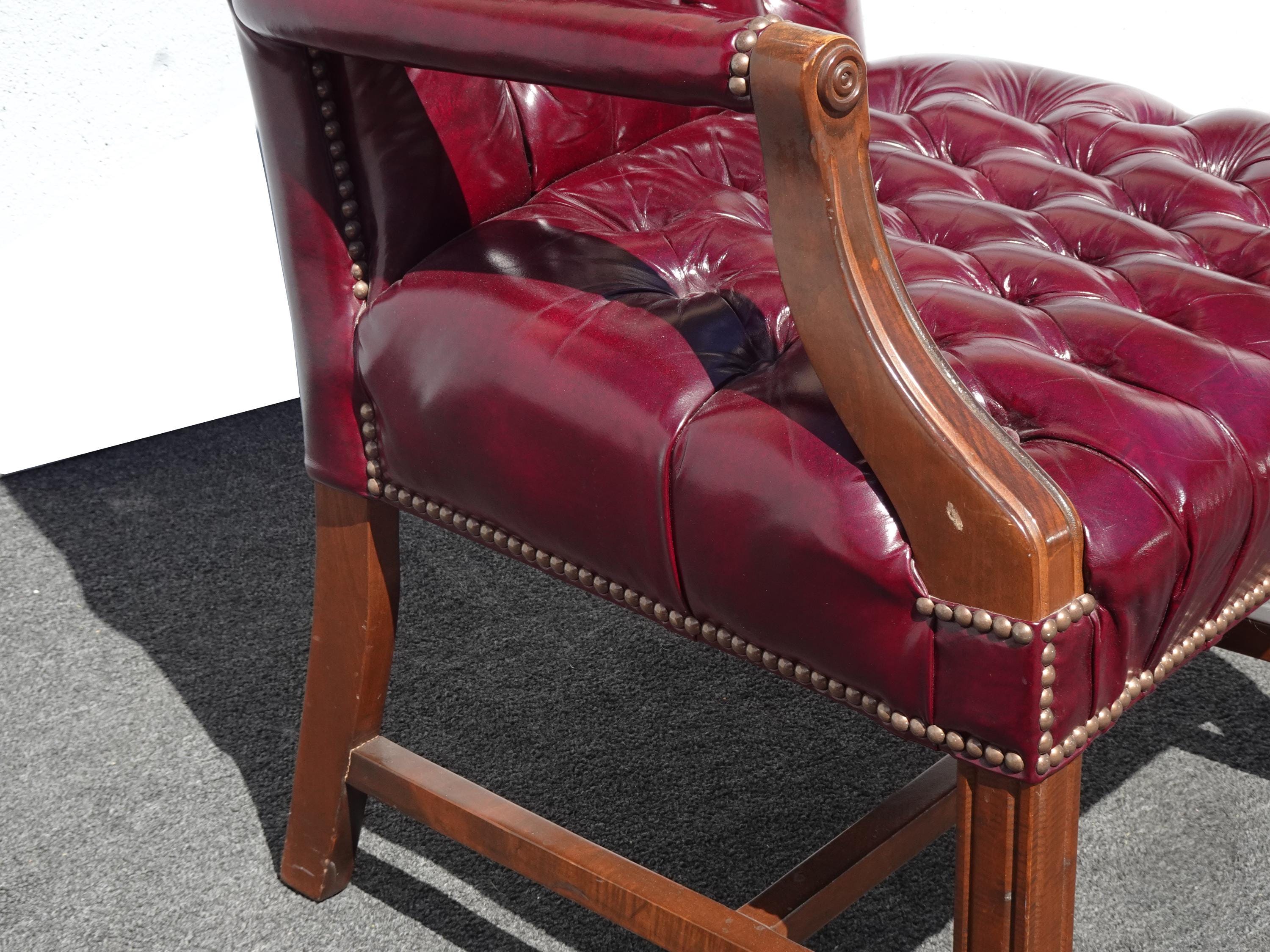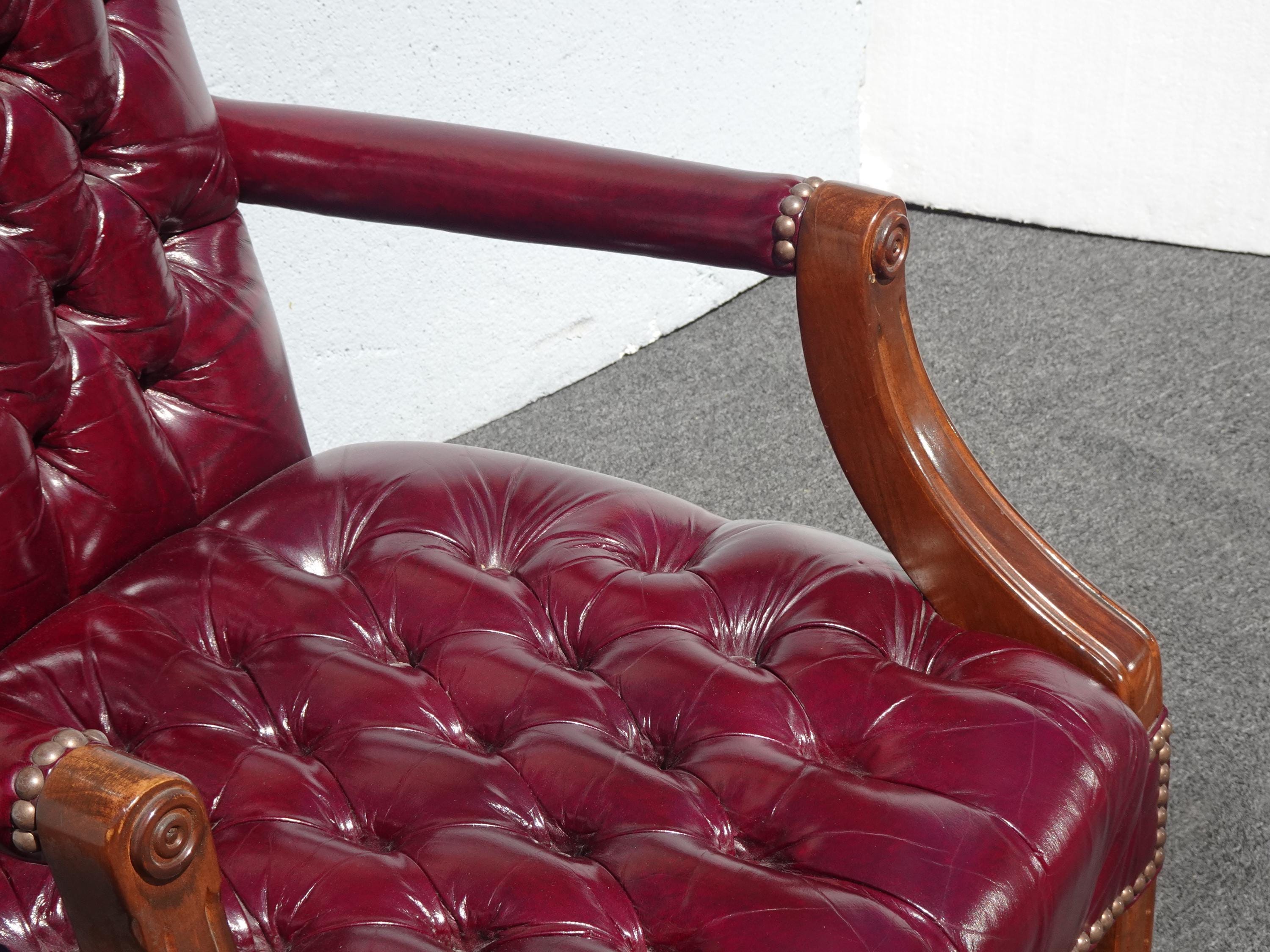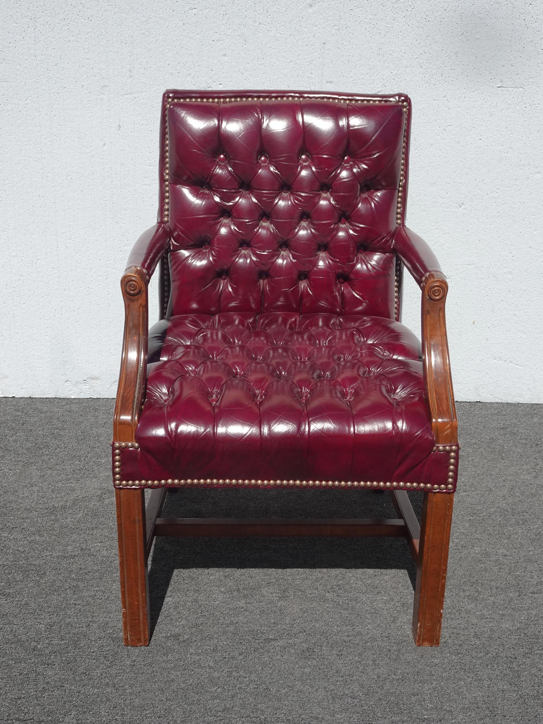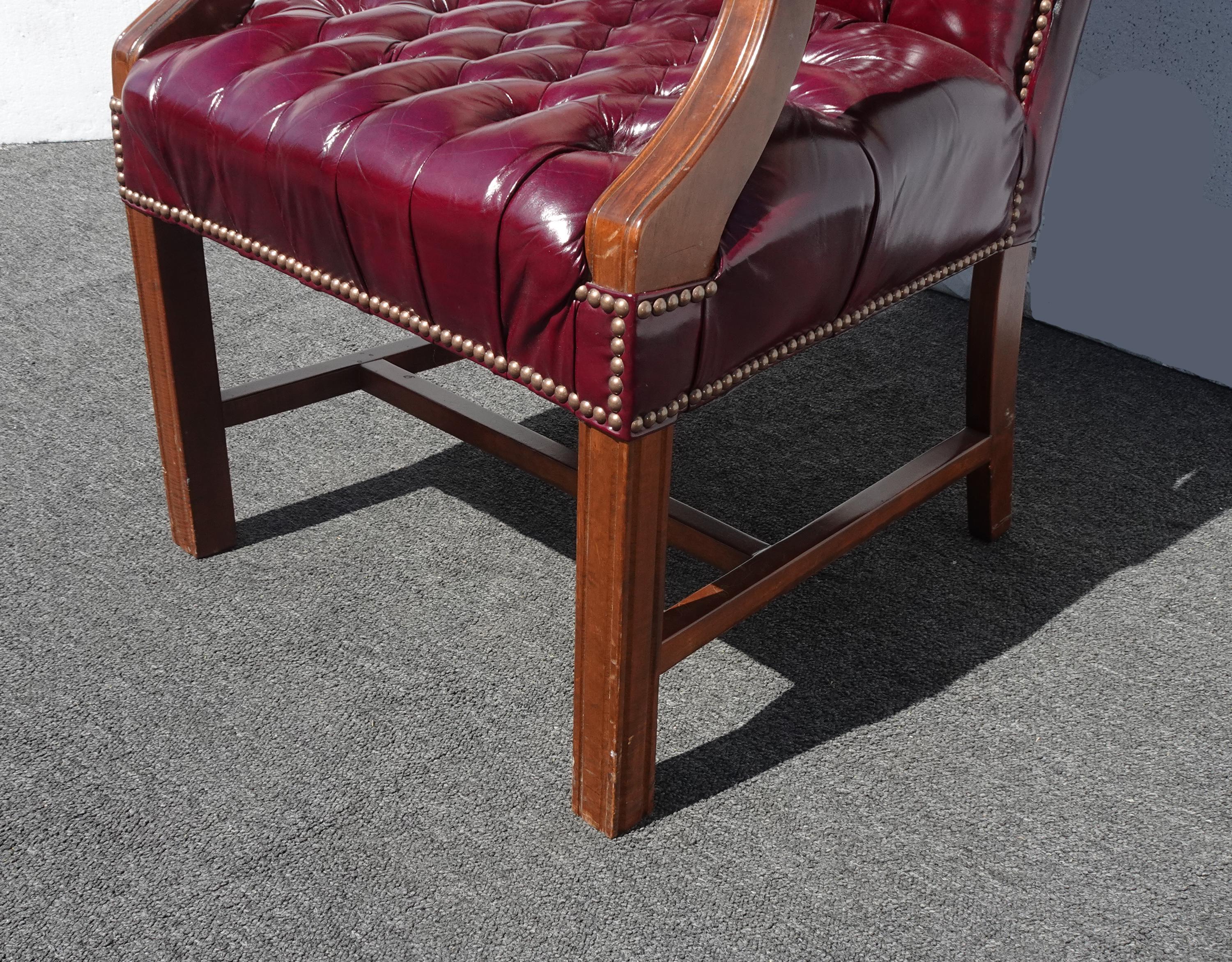 Vintage Georgian Styl Burgundy Leather Gainsborough Armchair Tufted Chesterfield