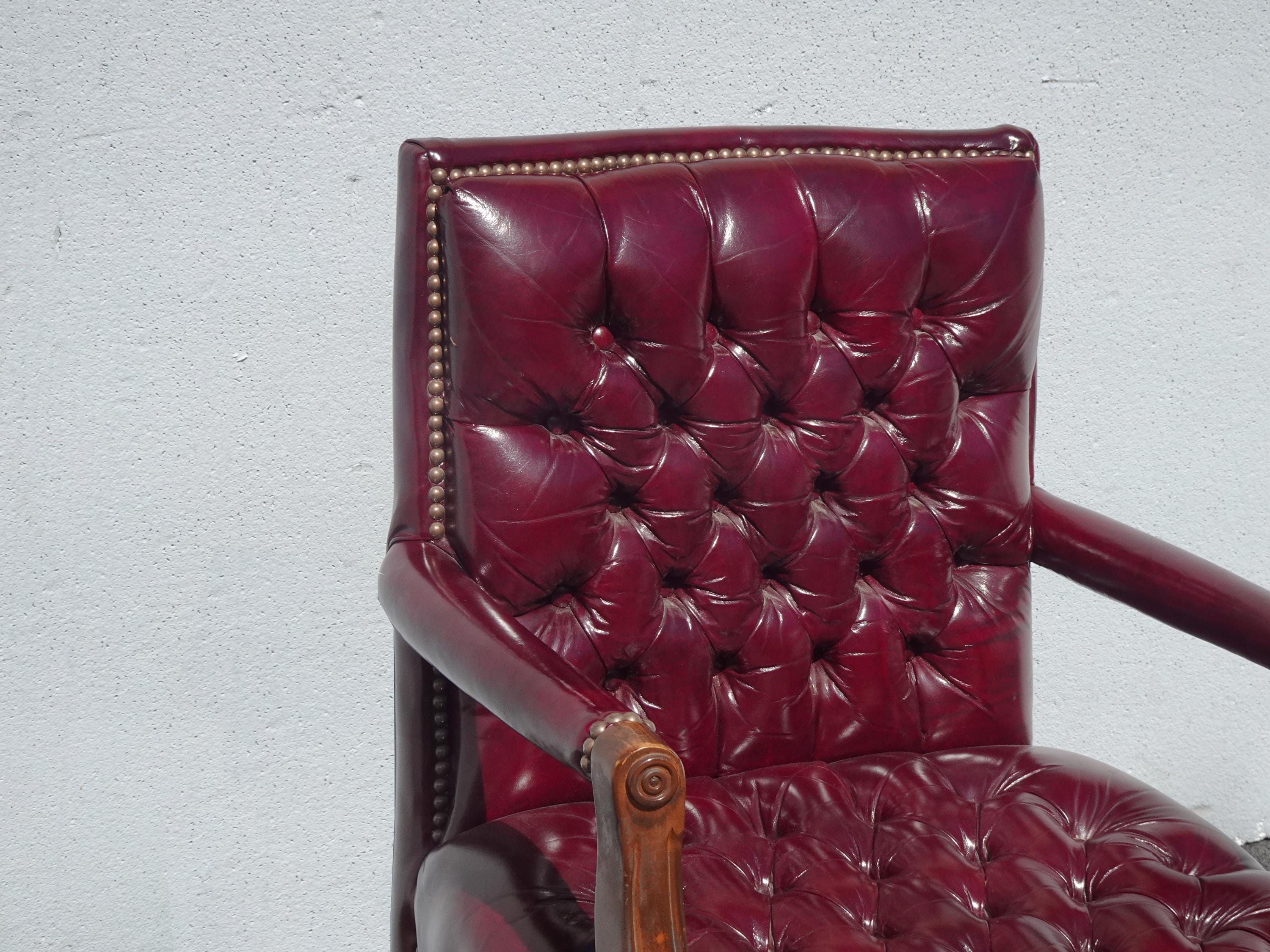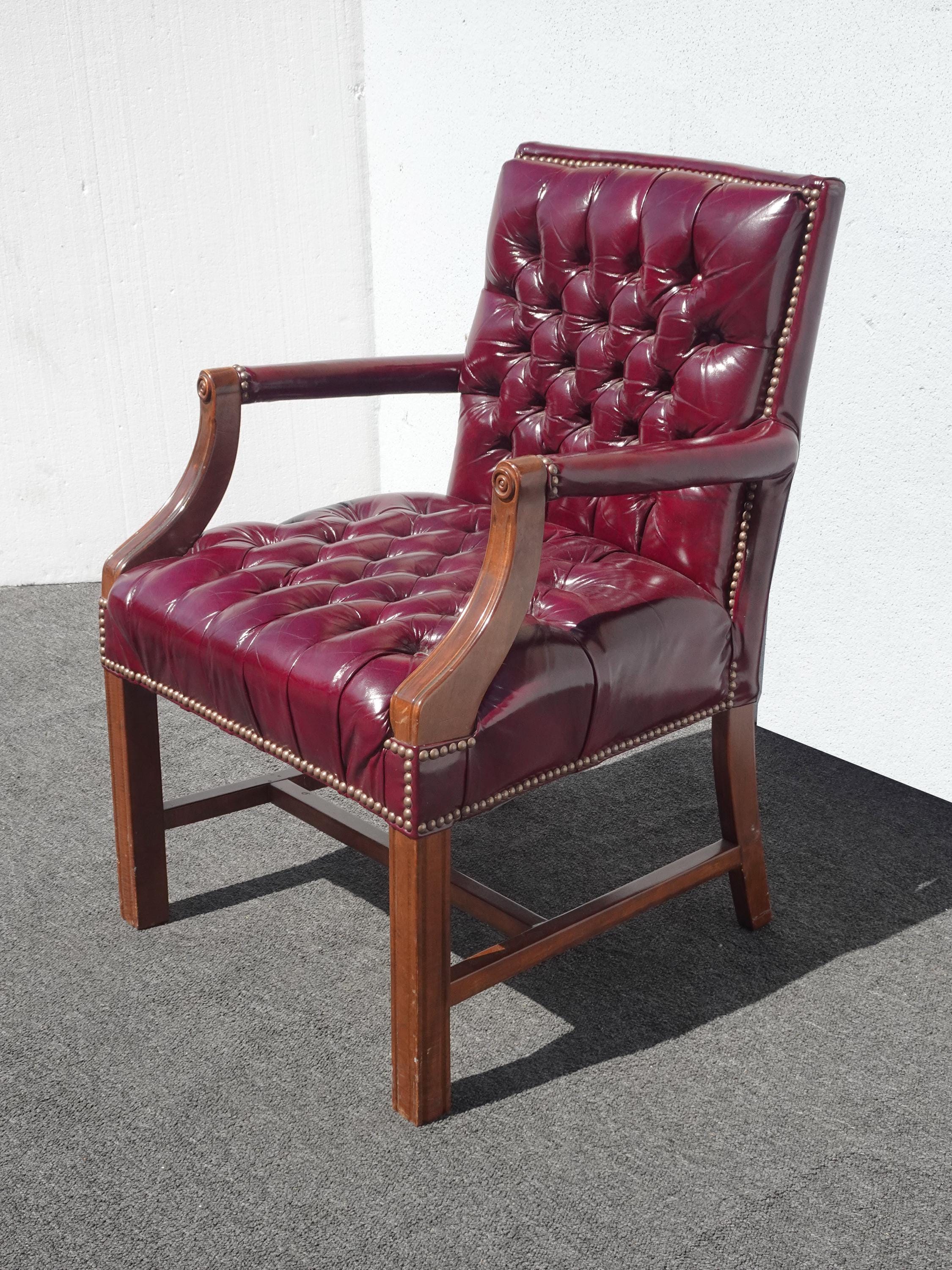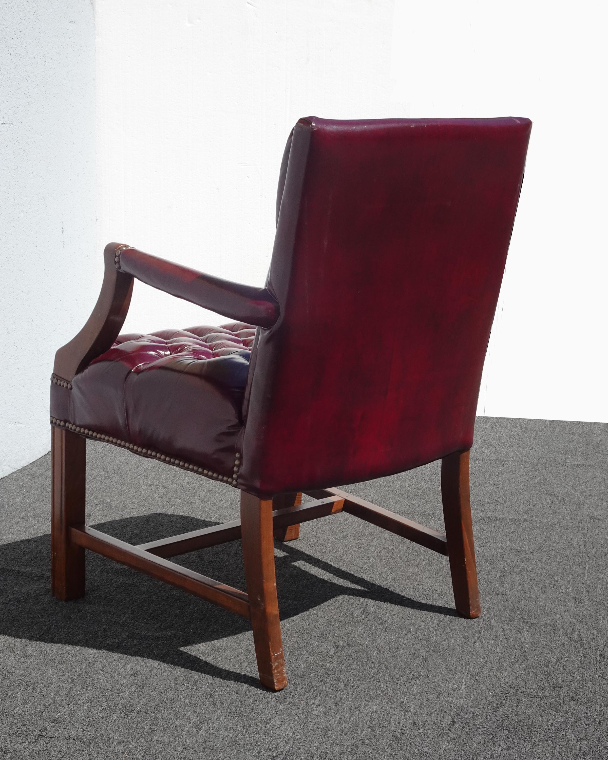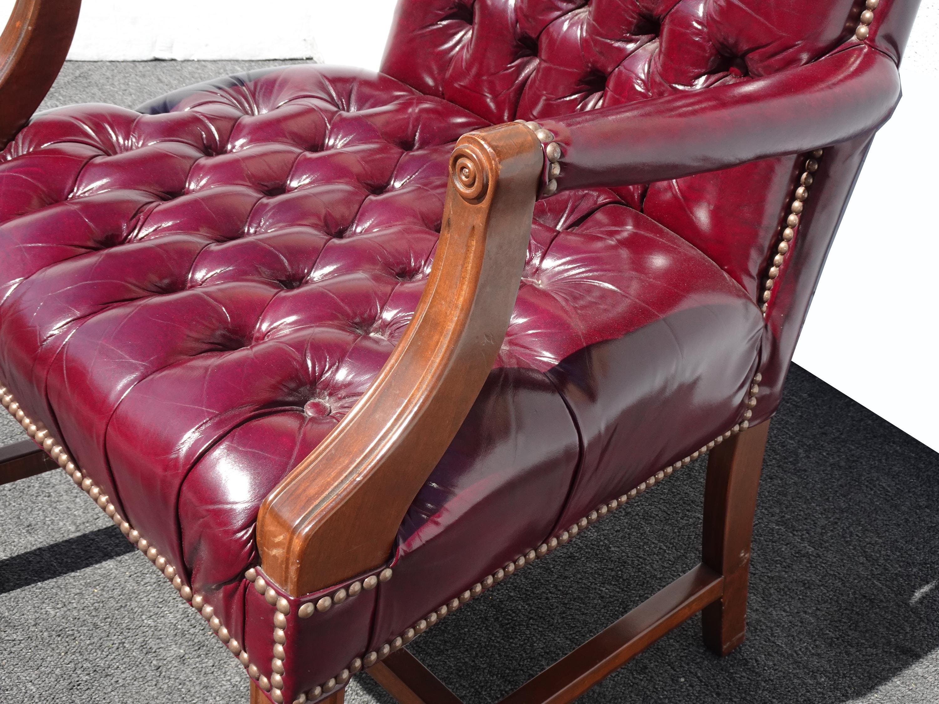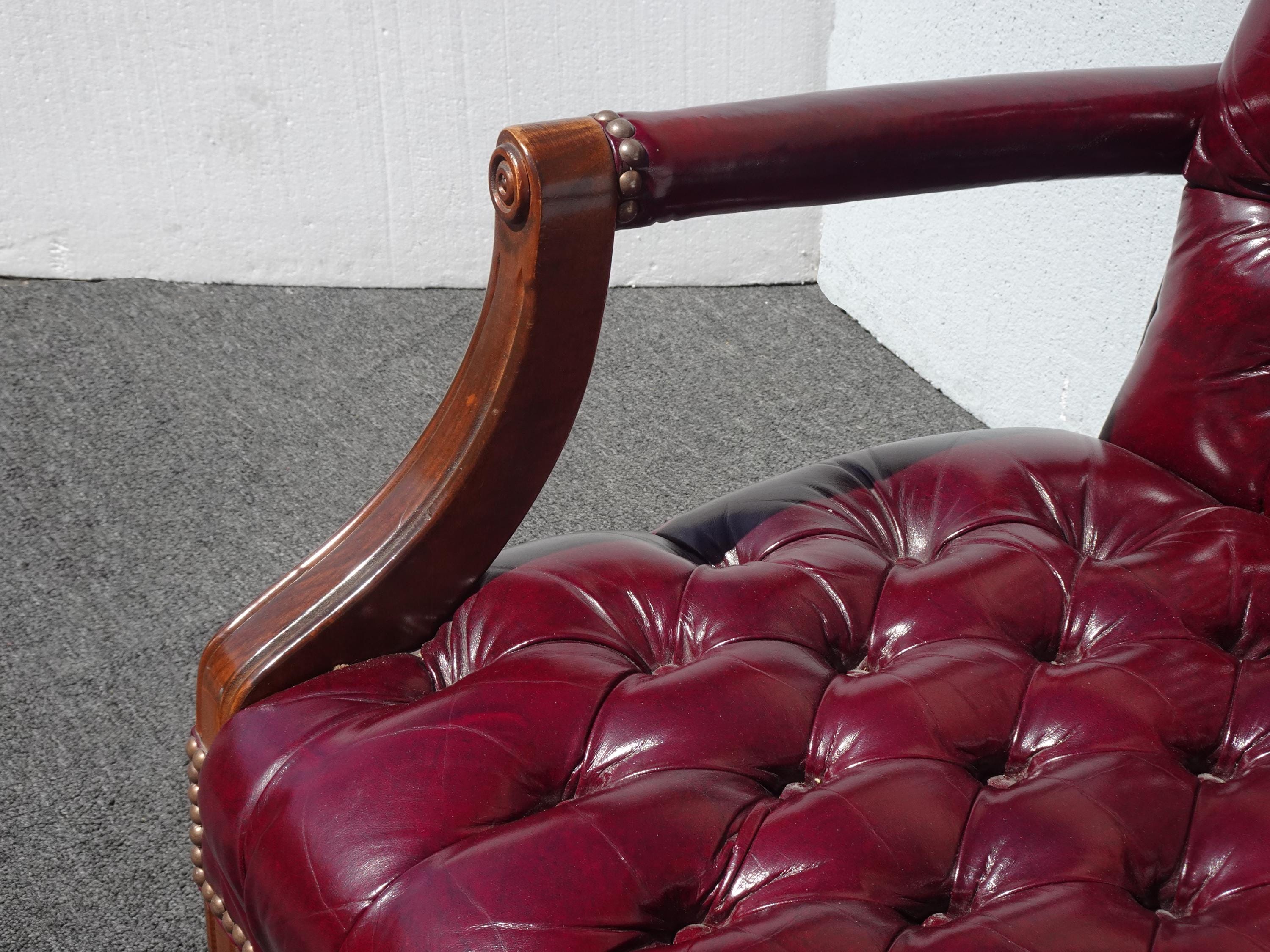 Vintage Georgian Styl Burgundy Leather Gainsborough Armchair Tufted Chesterfield