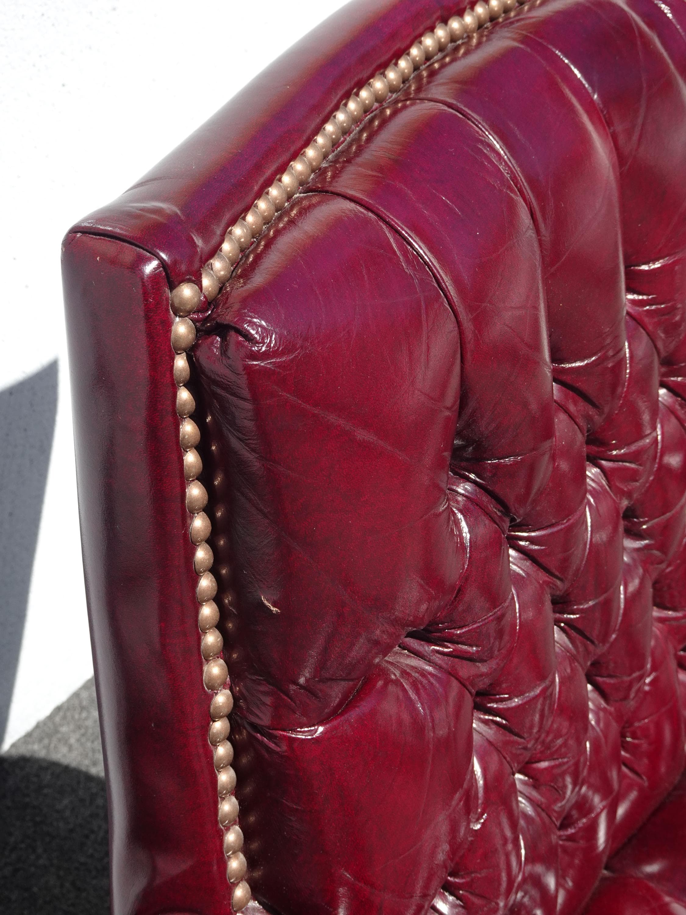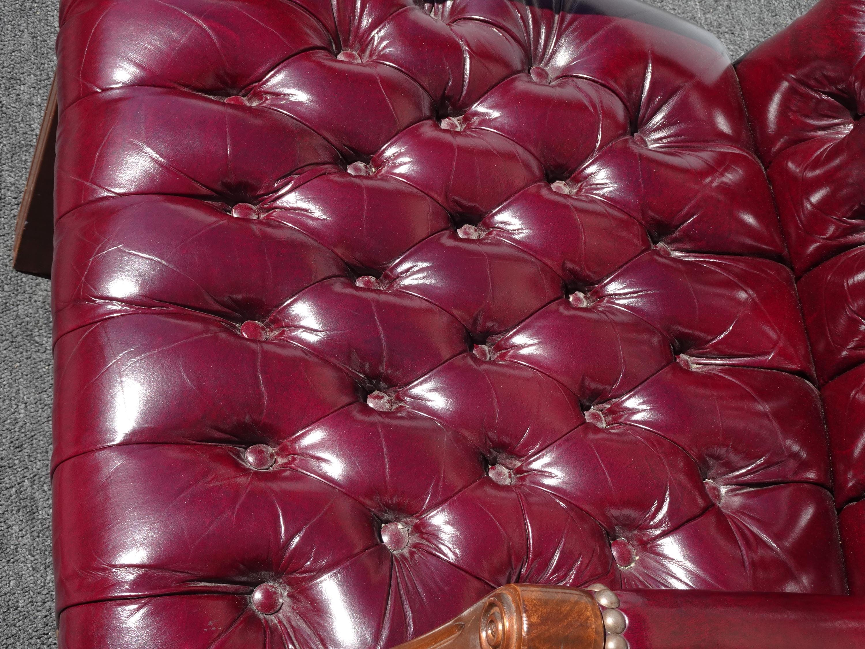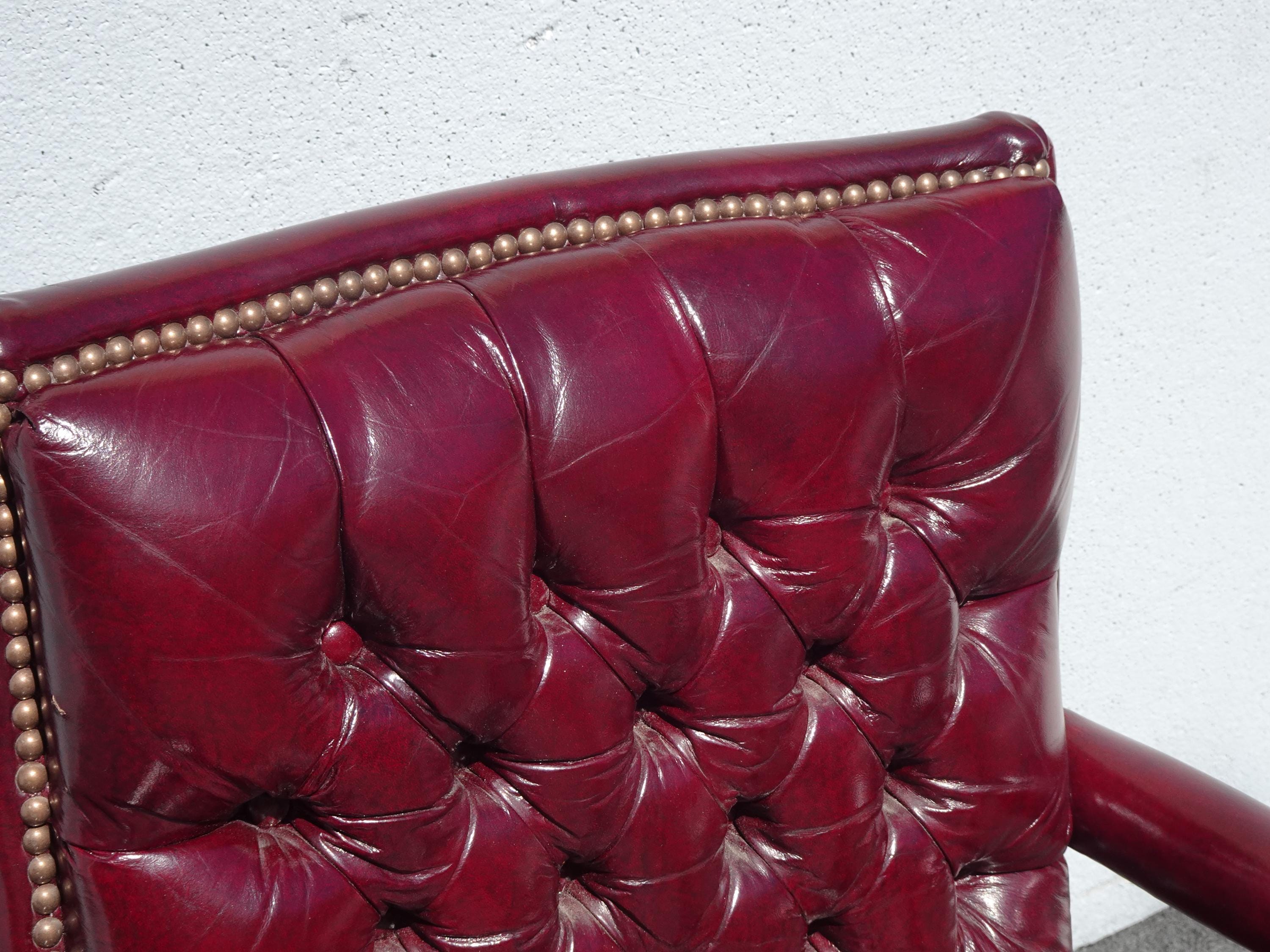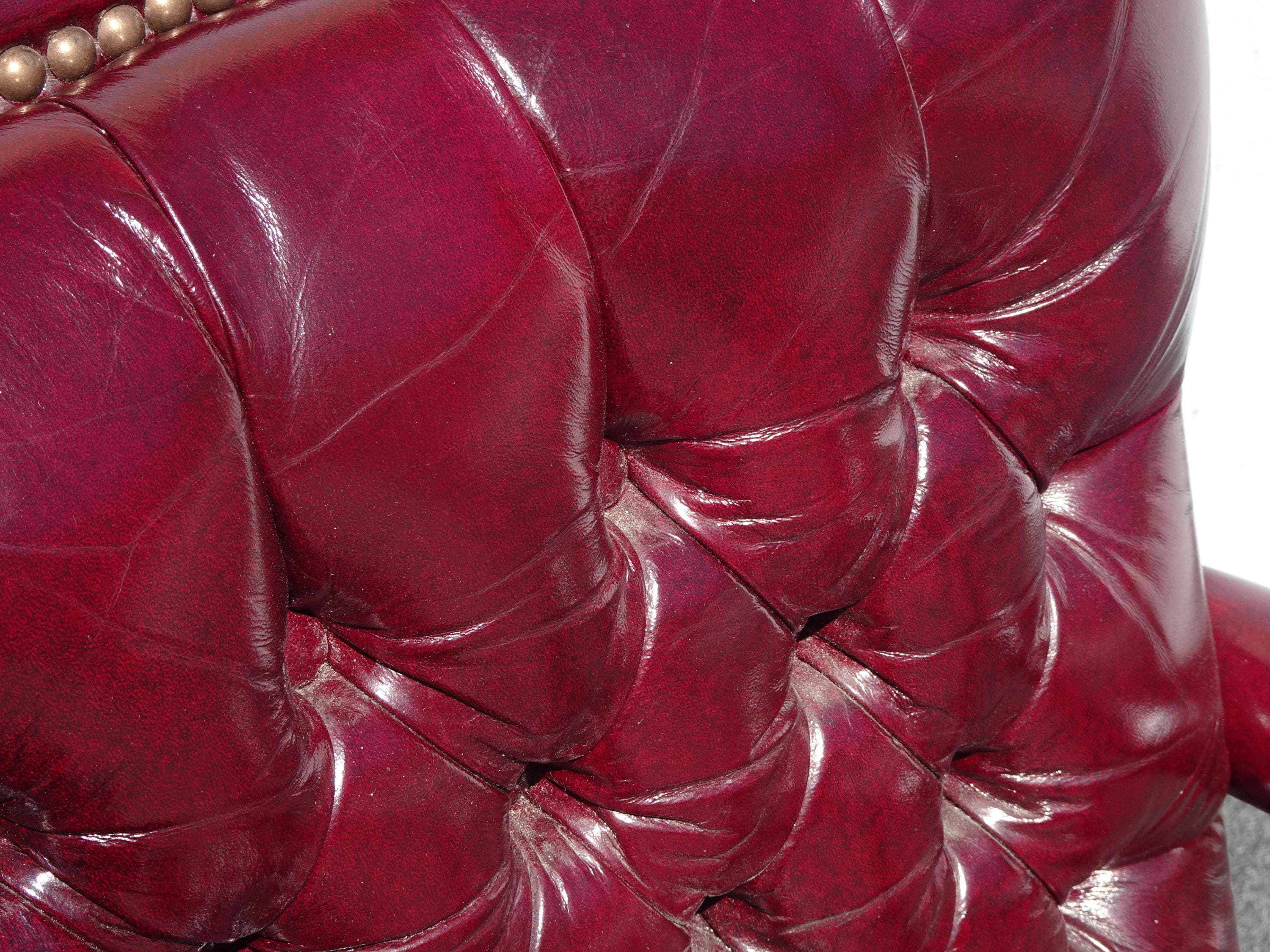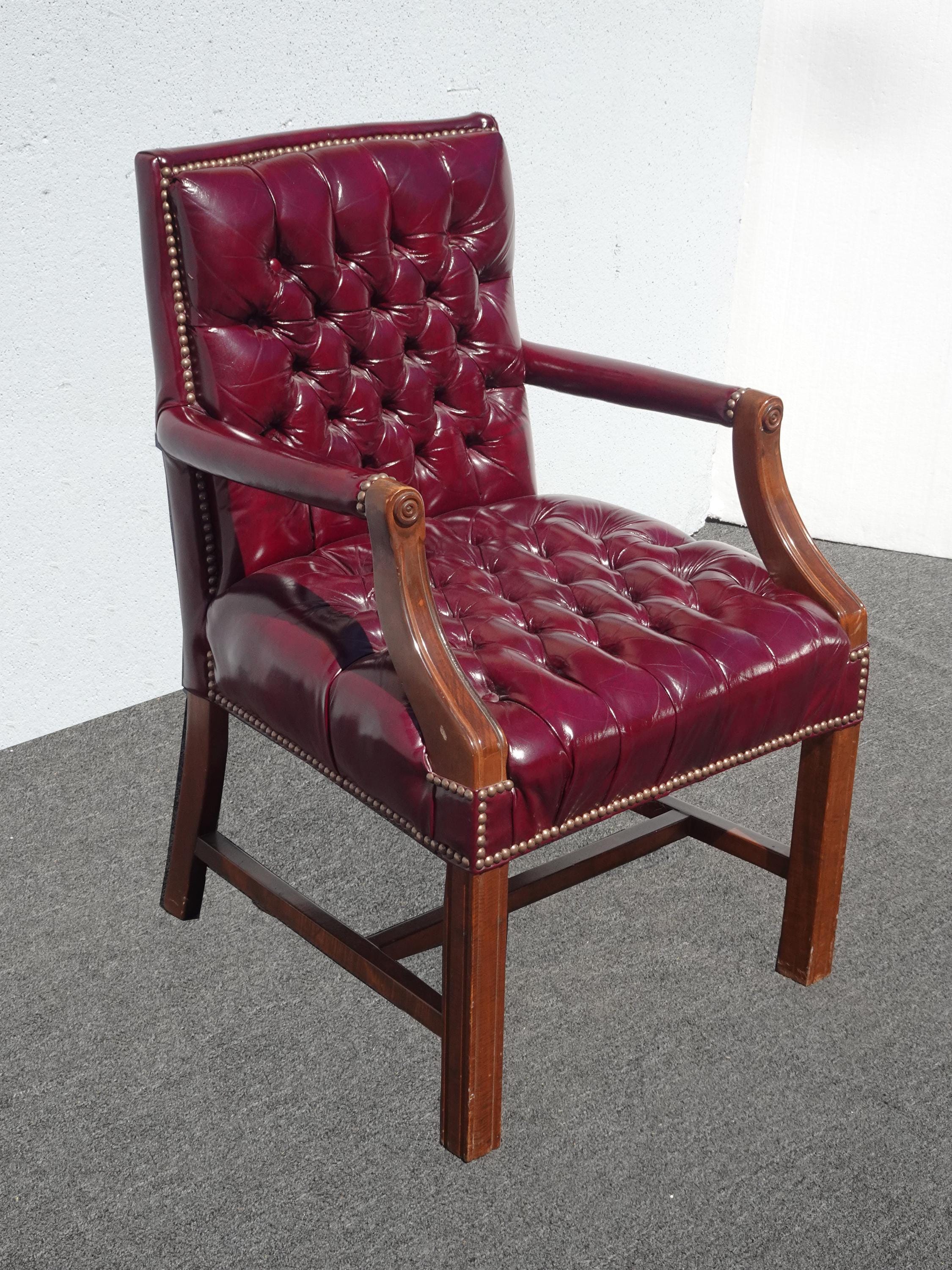 Vintage Georgian Styl Burgundy Leather Gainsborough Armchair Tufted Chesterfield