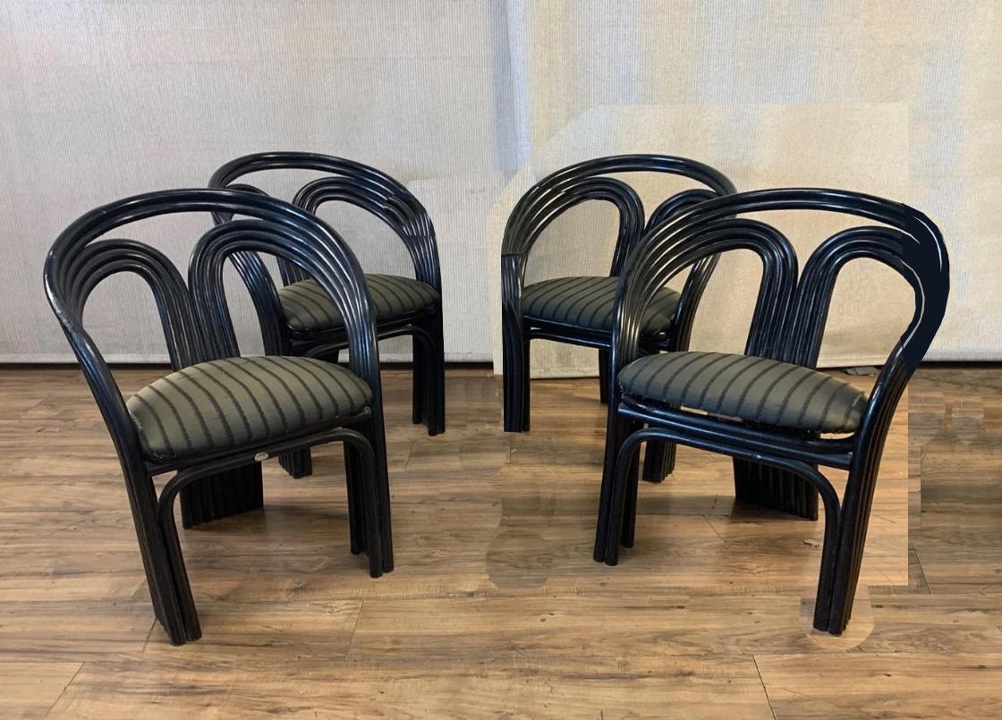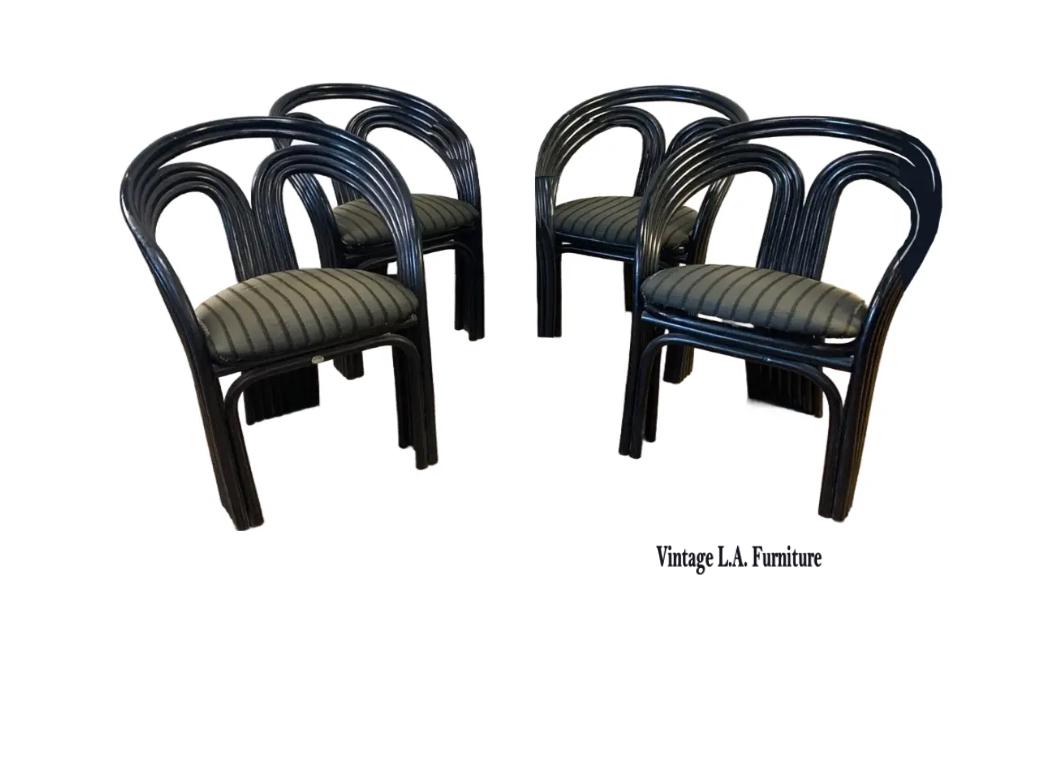 Set Four 1980's Bamboo Rattan Dining Chairs - Axel Enthoven for Rohe Noordwolde