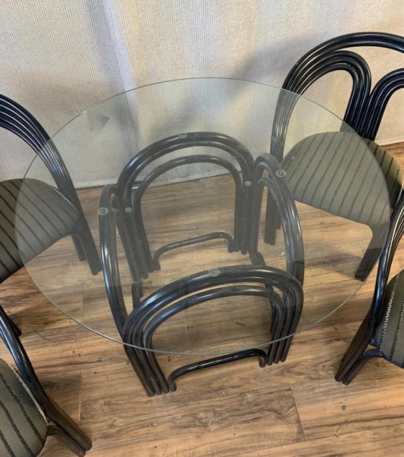 Vintage 1980's Bamboo Glass Dining Table - Axel Enthoven for Rohe Noordwolde