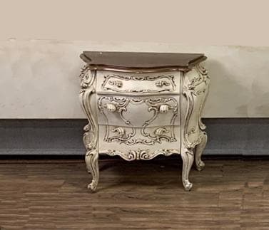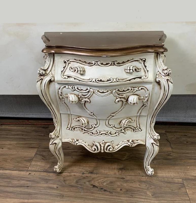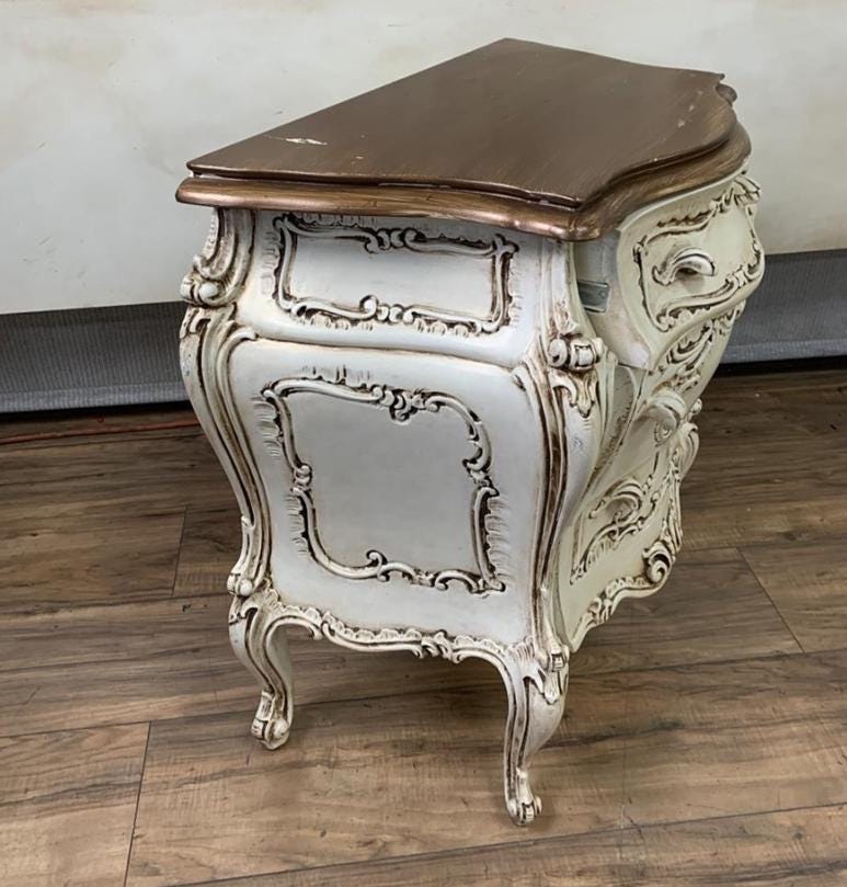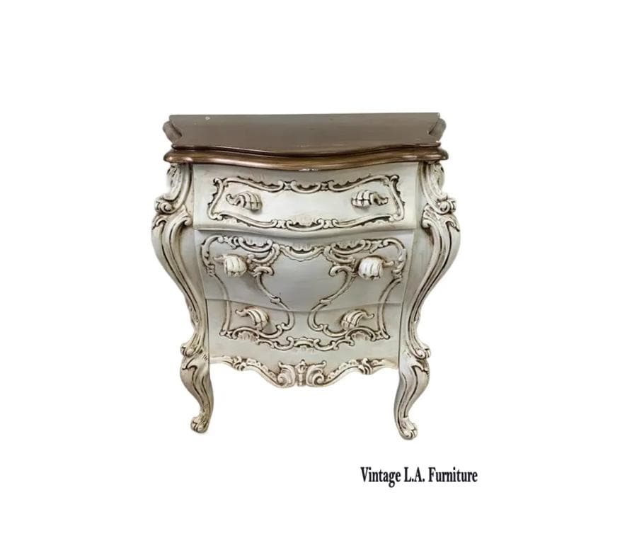 Vintage French Italian Rococo Louis XVI Style Cream Ornate Bombe Nightstand