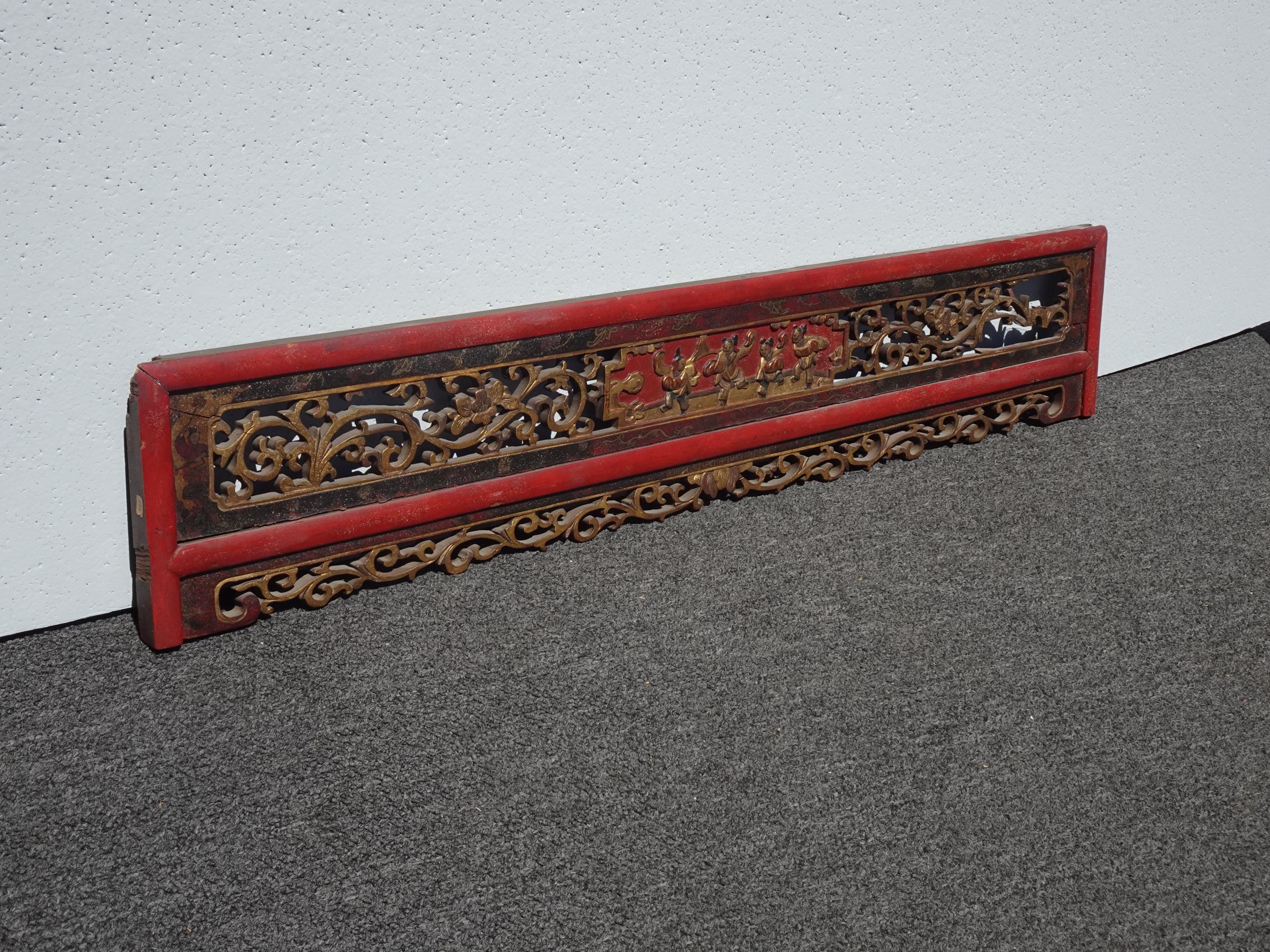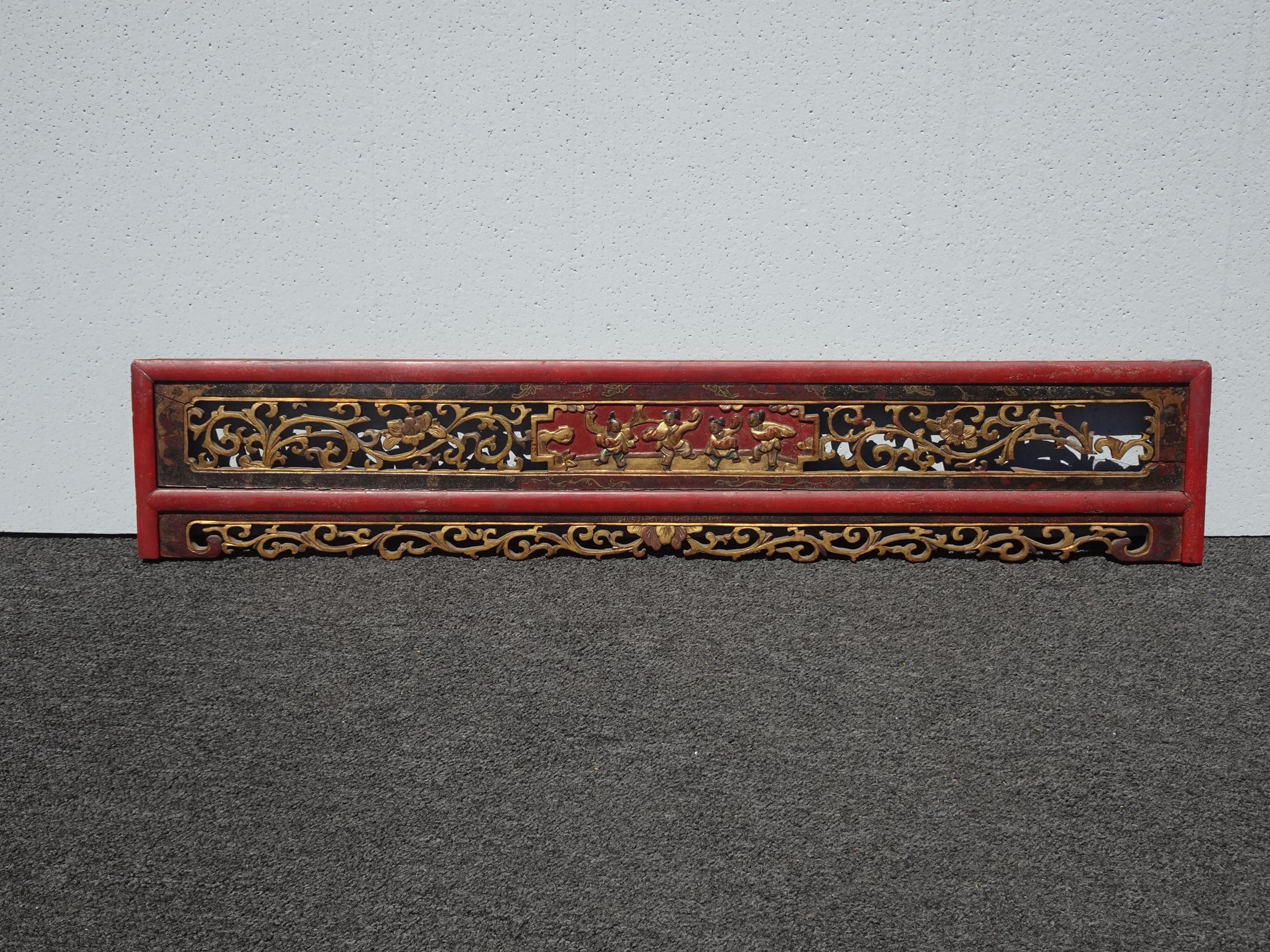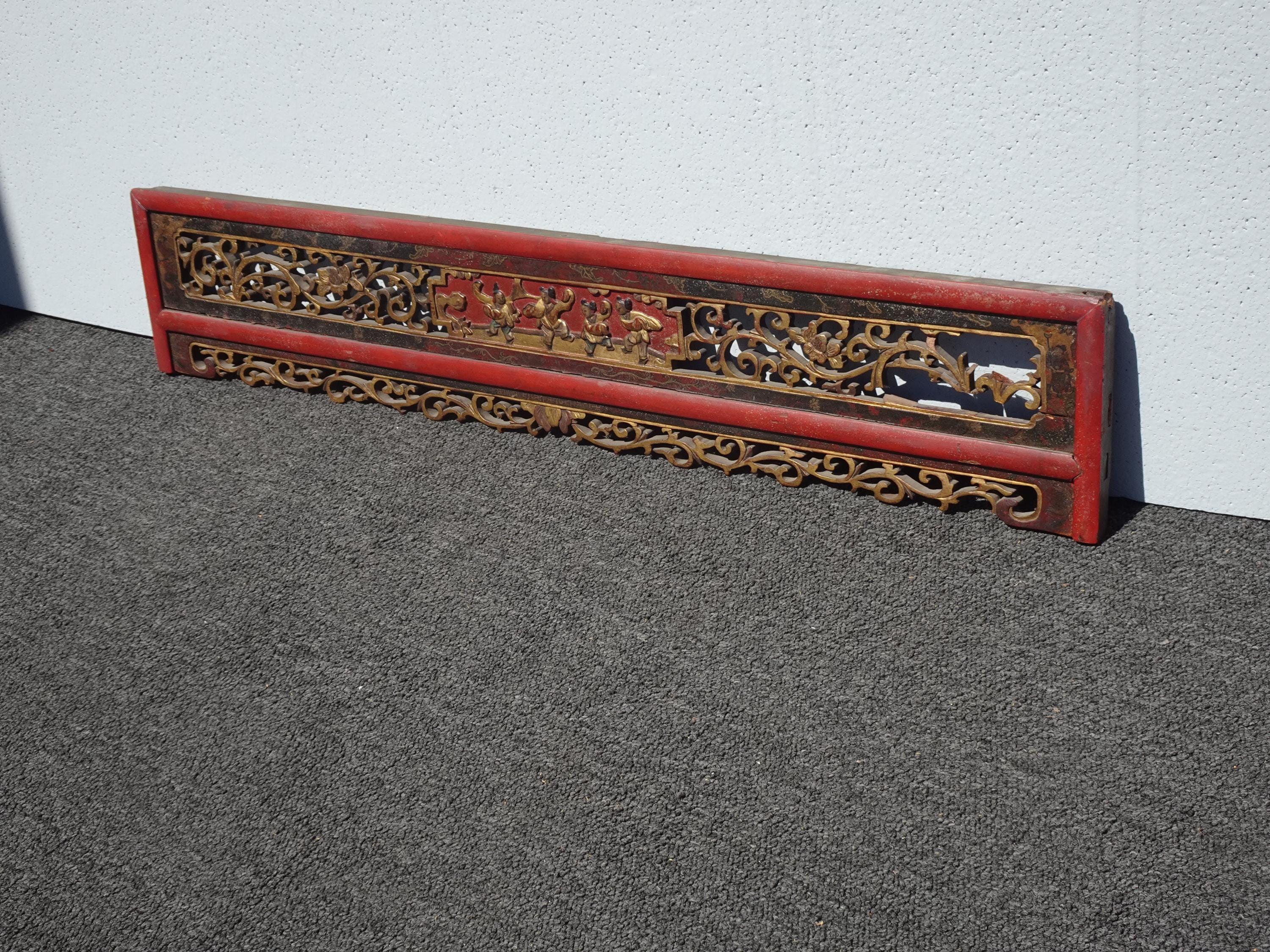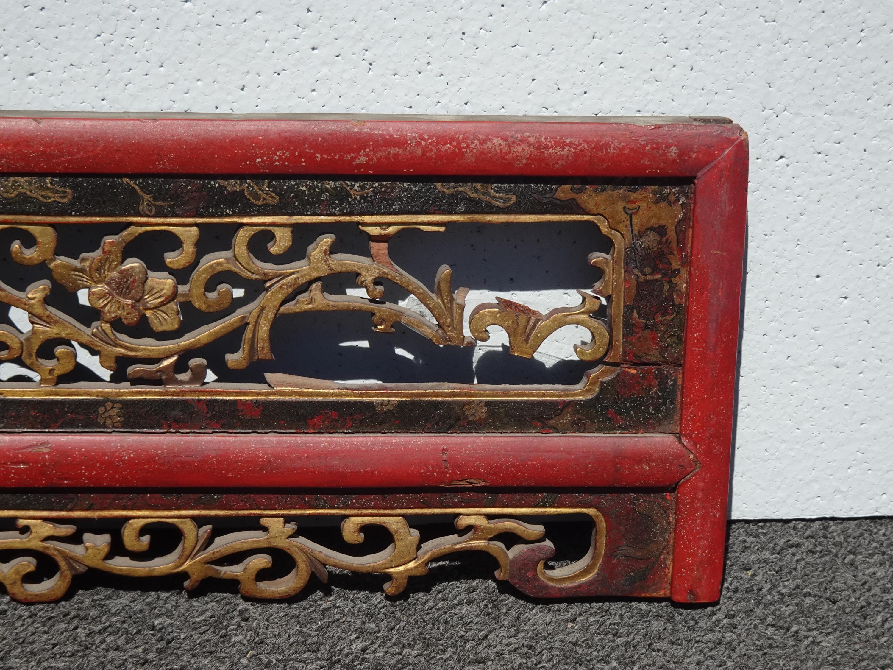 Vintage Oriental Asian Hanging Wall Decor ~ Decorative Red Carved Accent #2