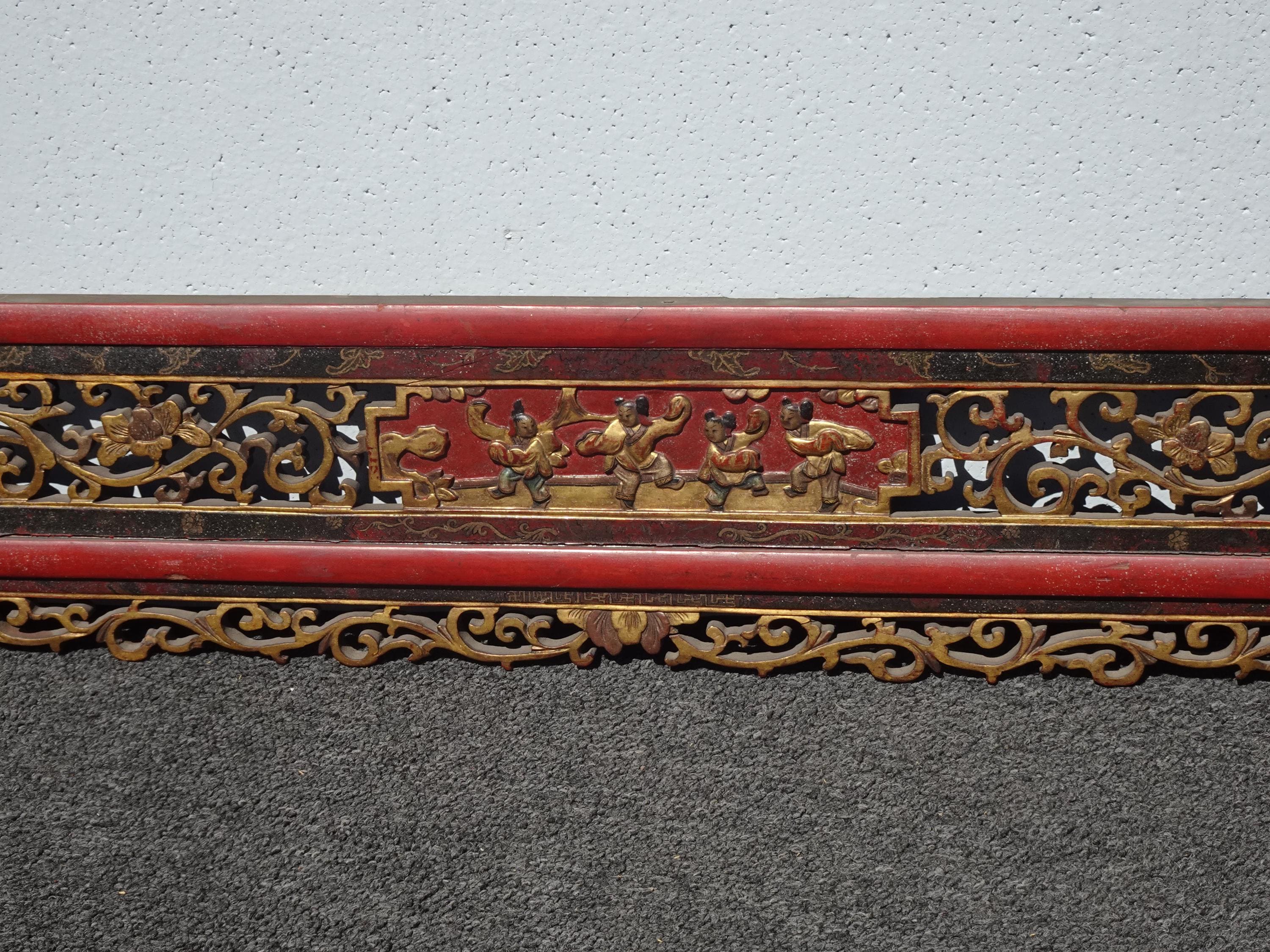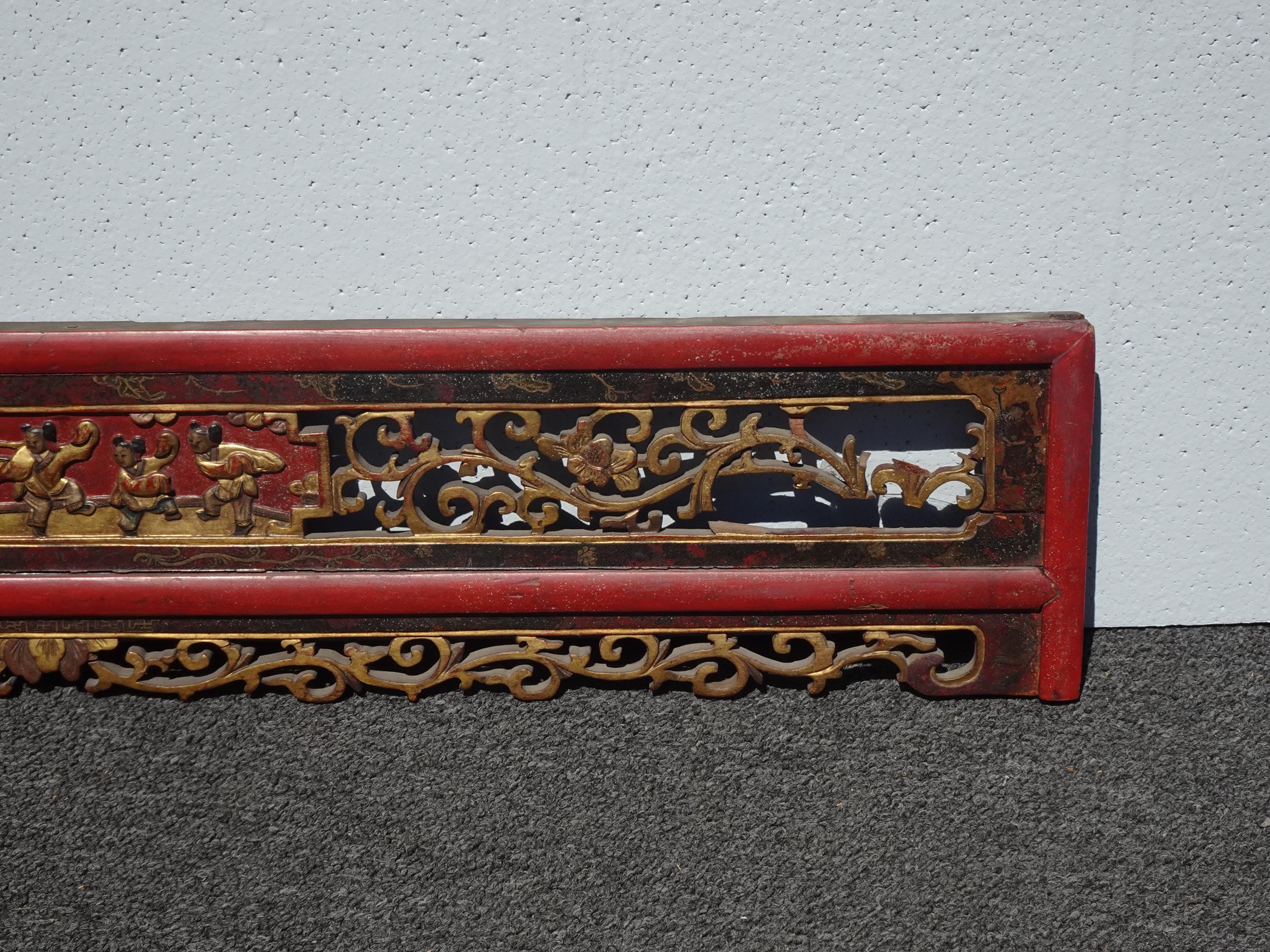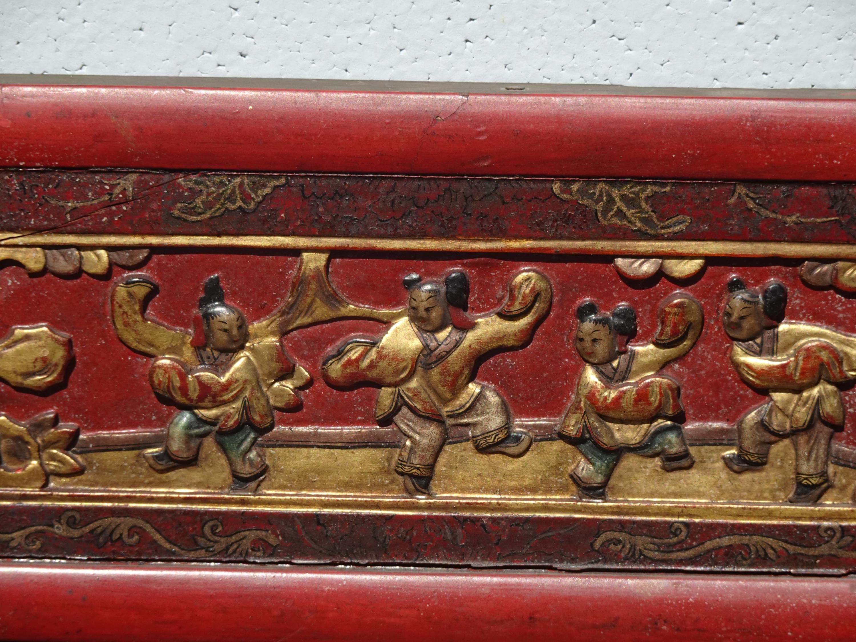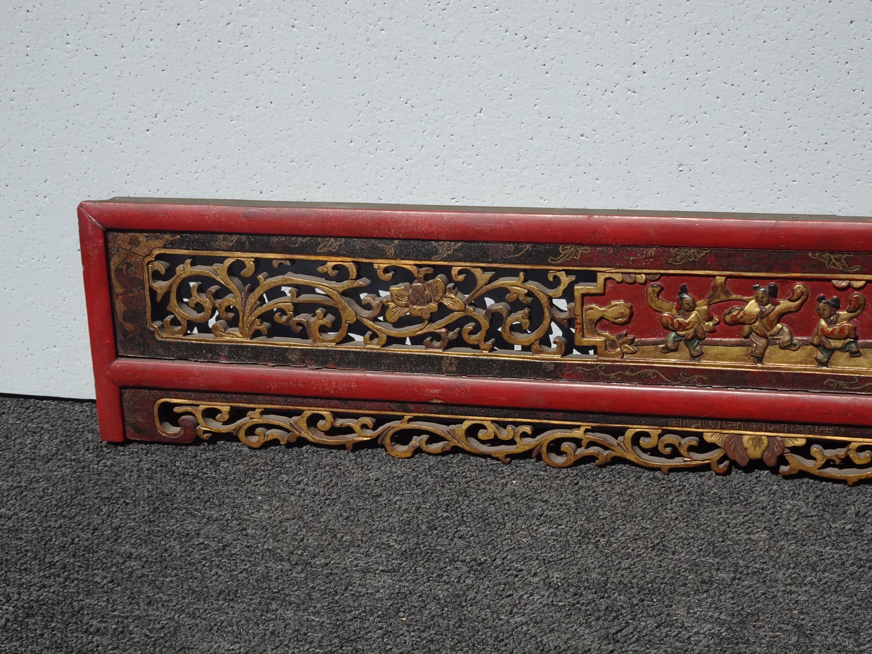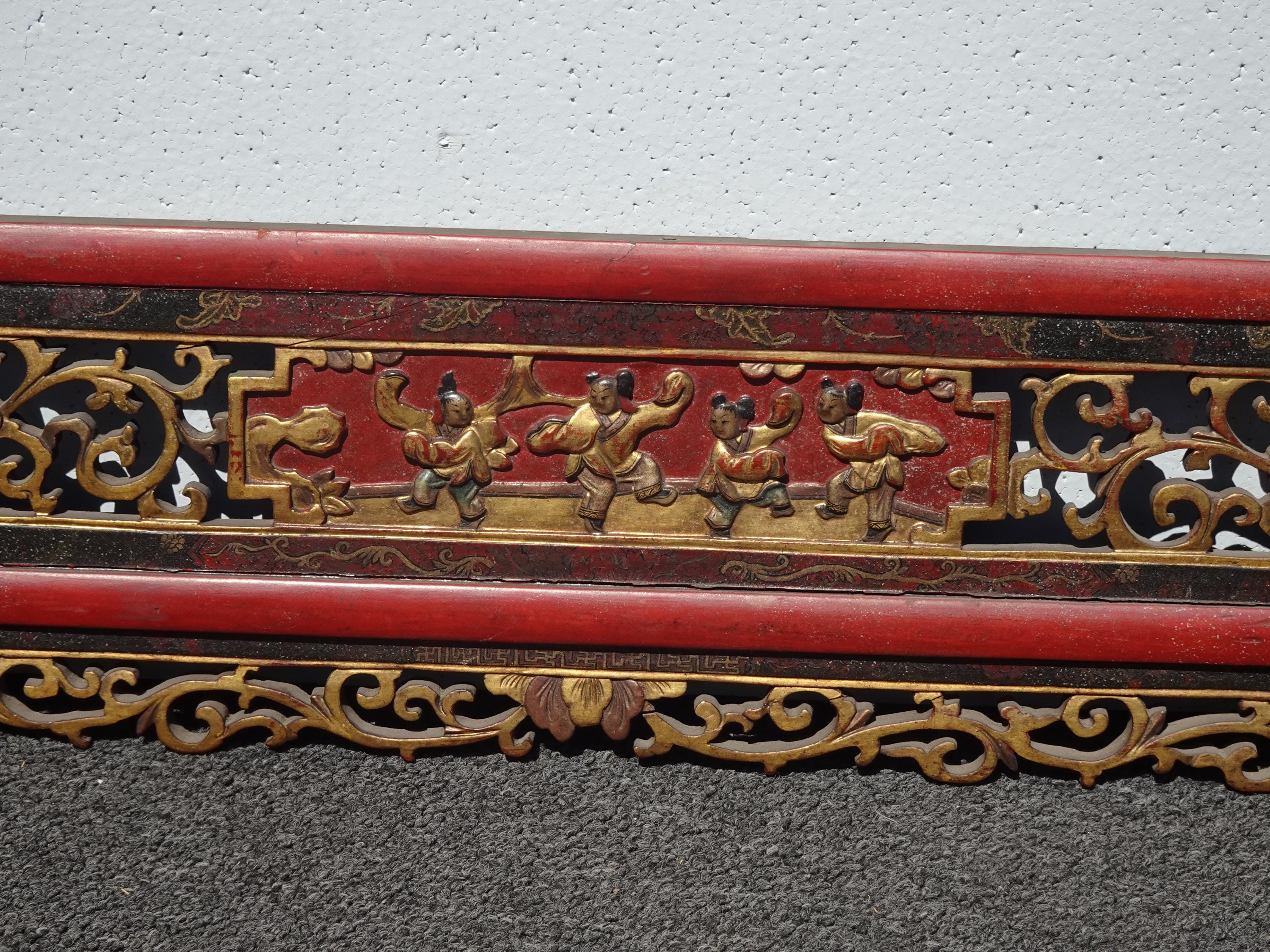 Vintage Oriental Asian Hanging Wall Decor ~ Decorative Red Carved Accent #2