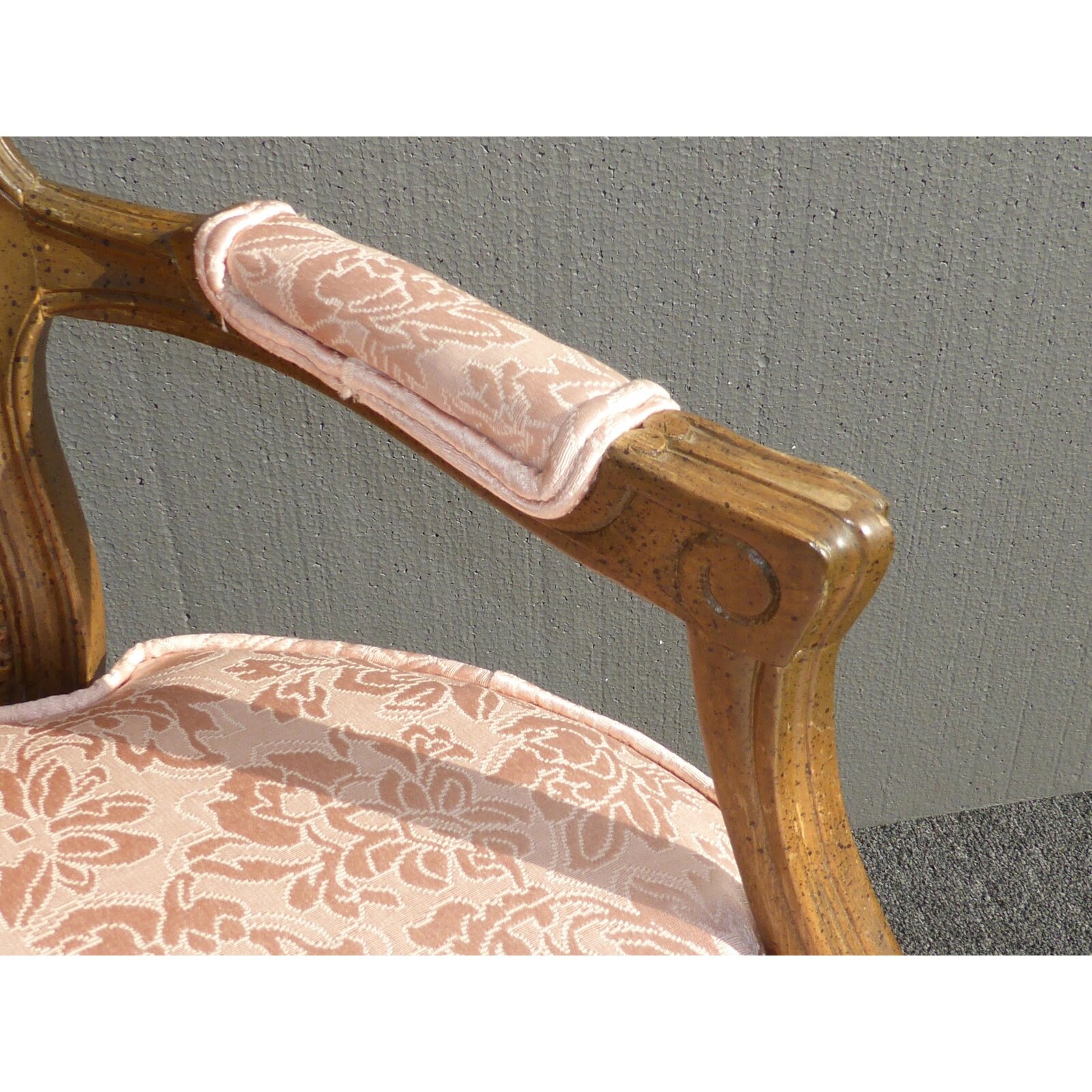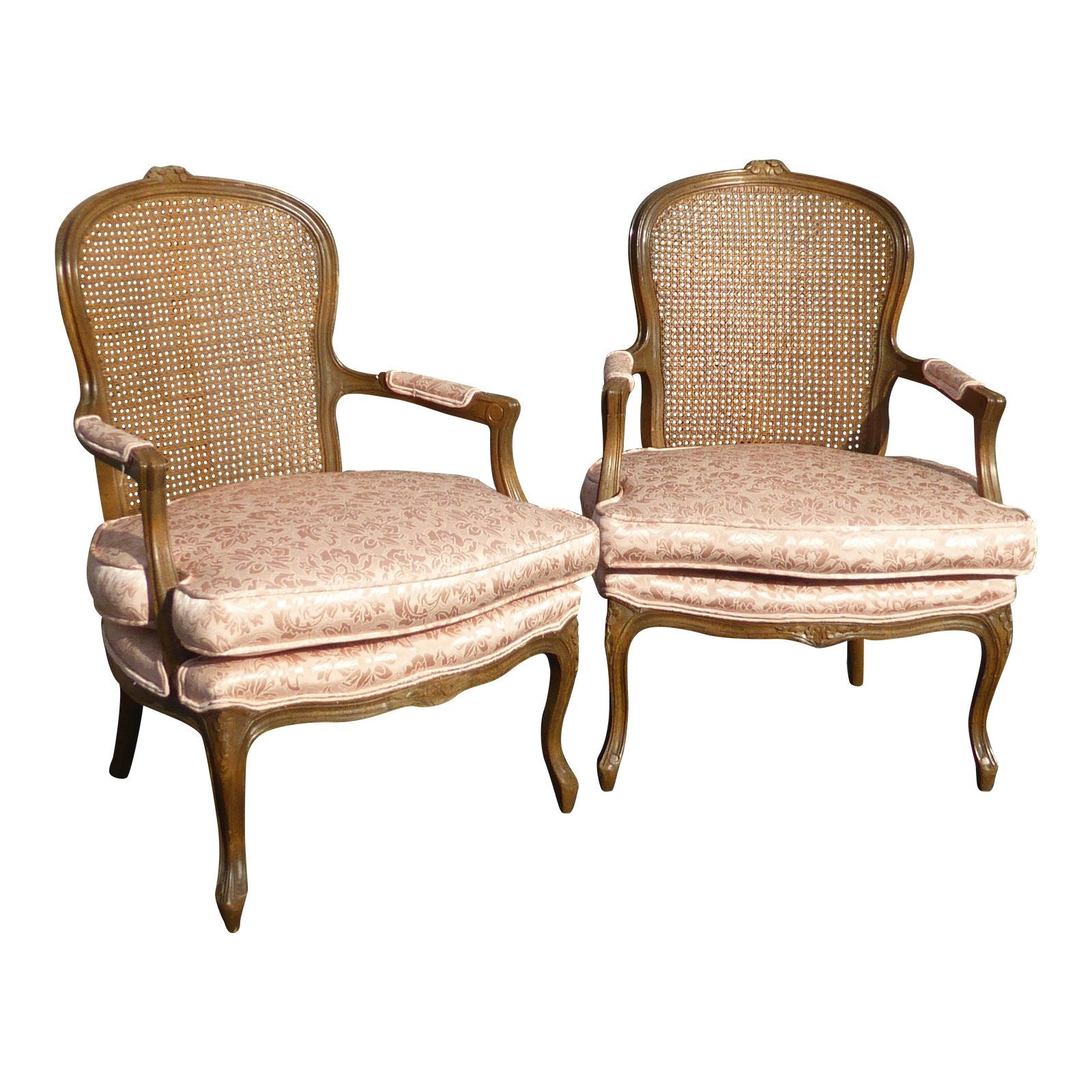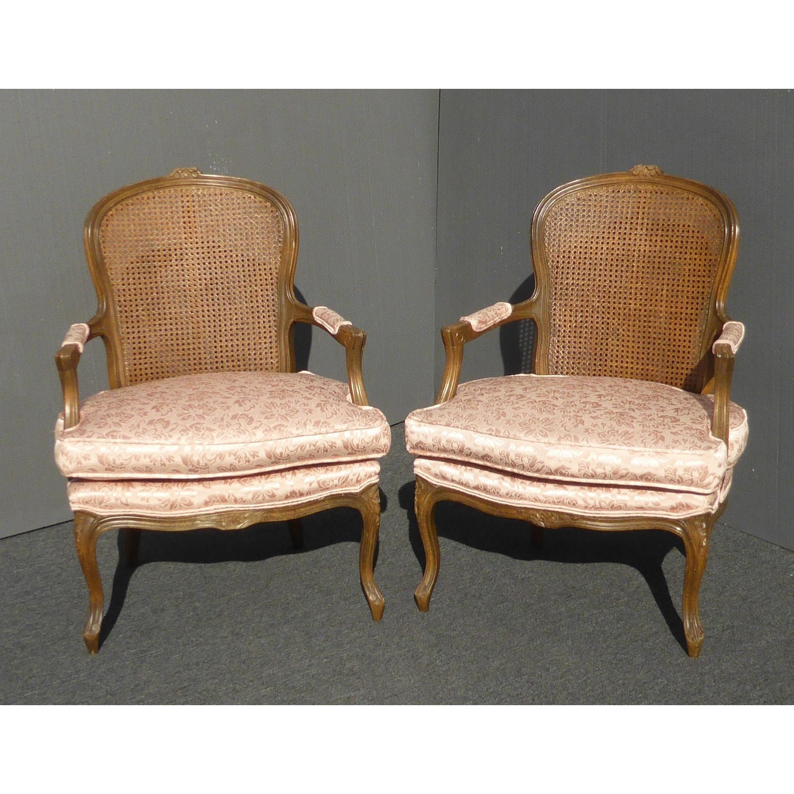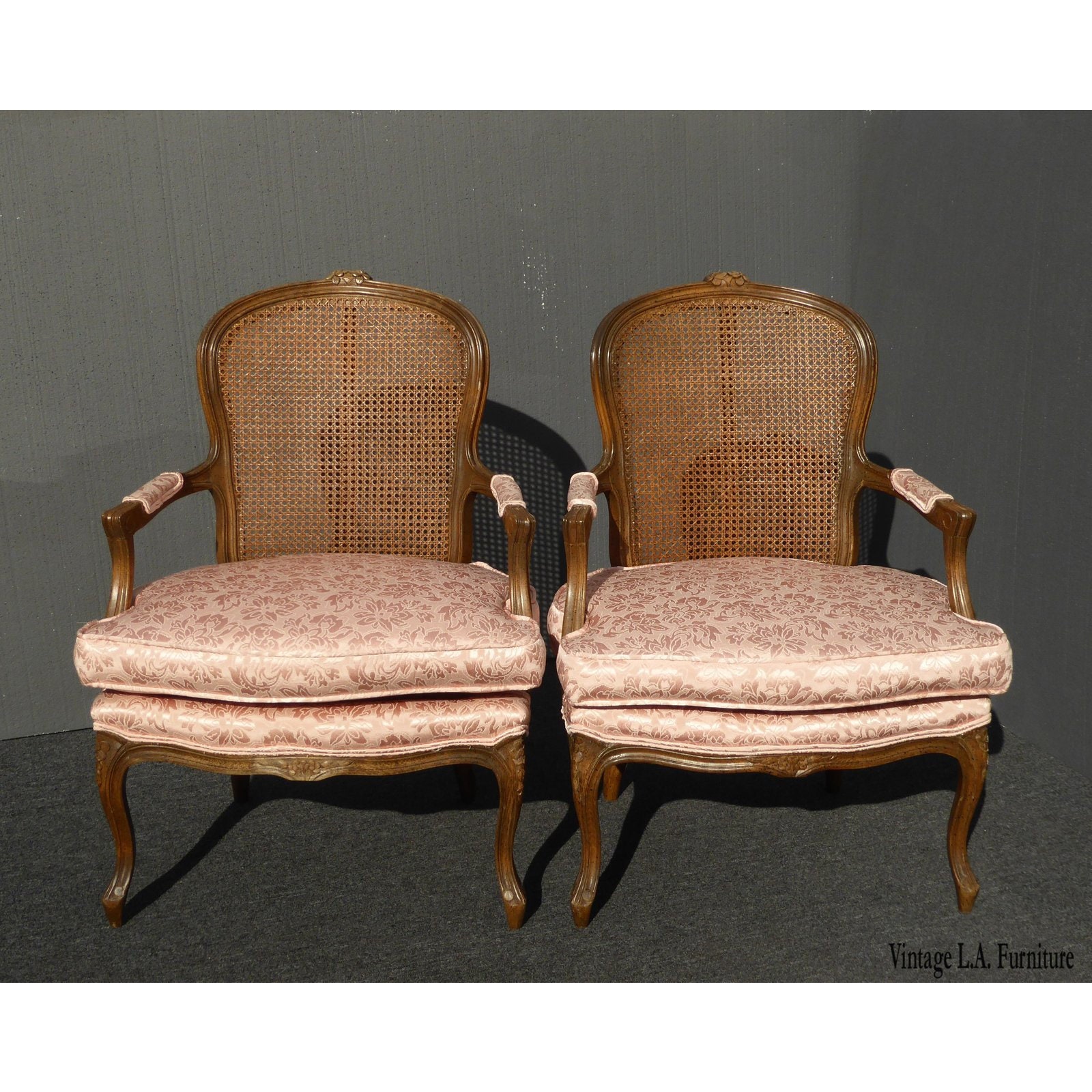 Vintage Pair of French Provincial Cane Back Chairs with Pink Floral Upholstery