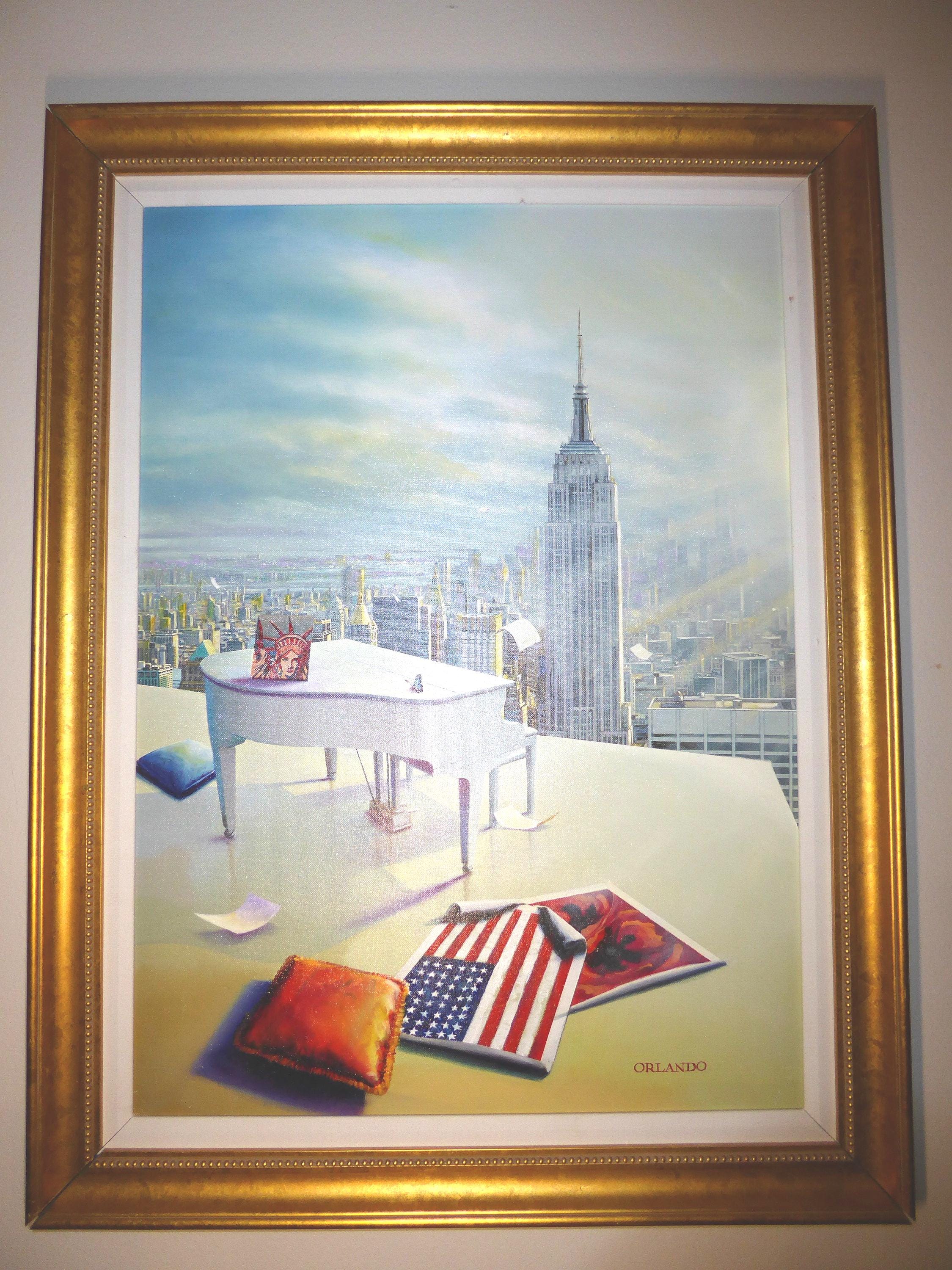 Orlando Quevedo "Manhattan Skyline" Framed Lithograph Painting Picture