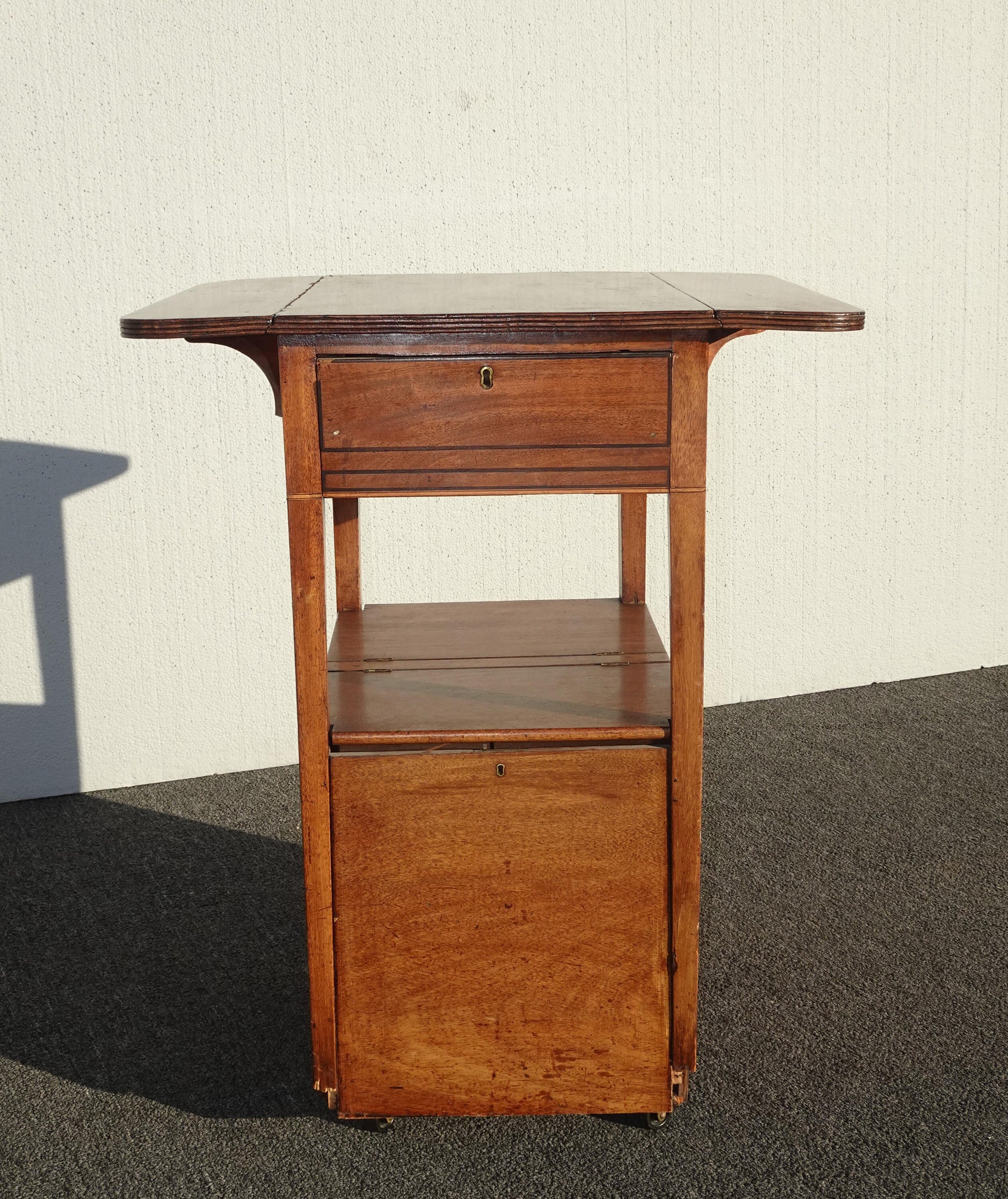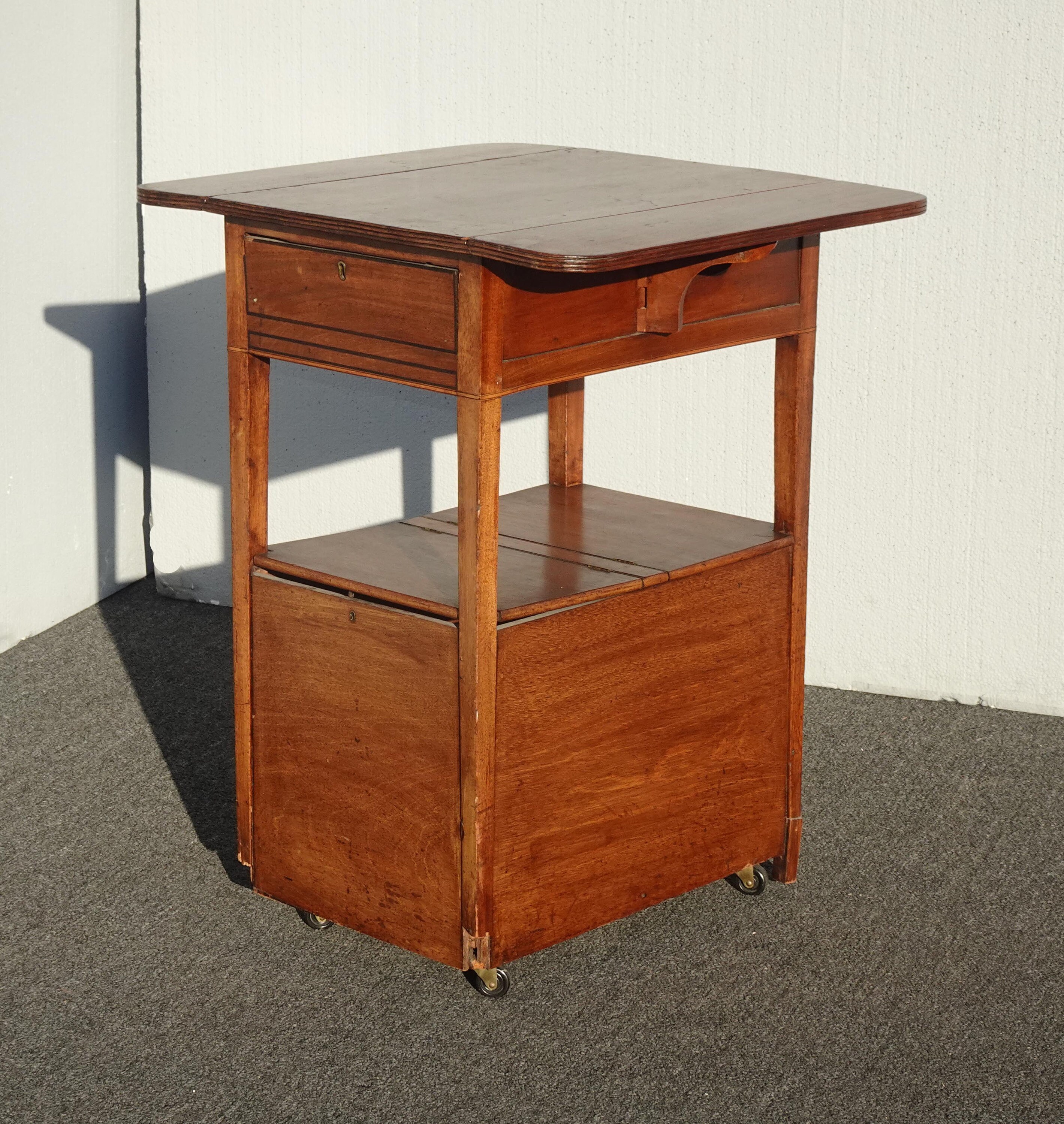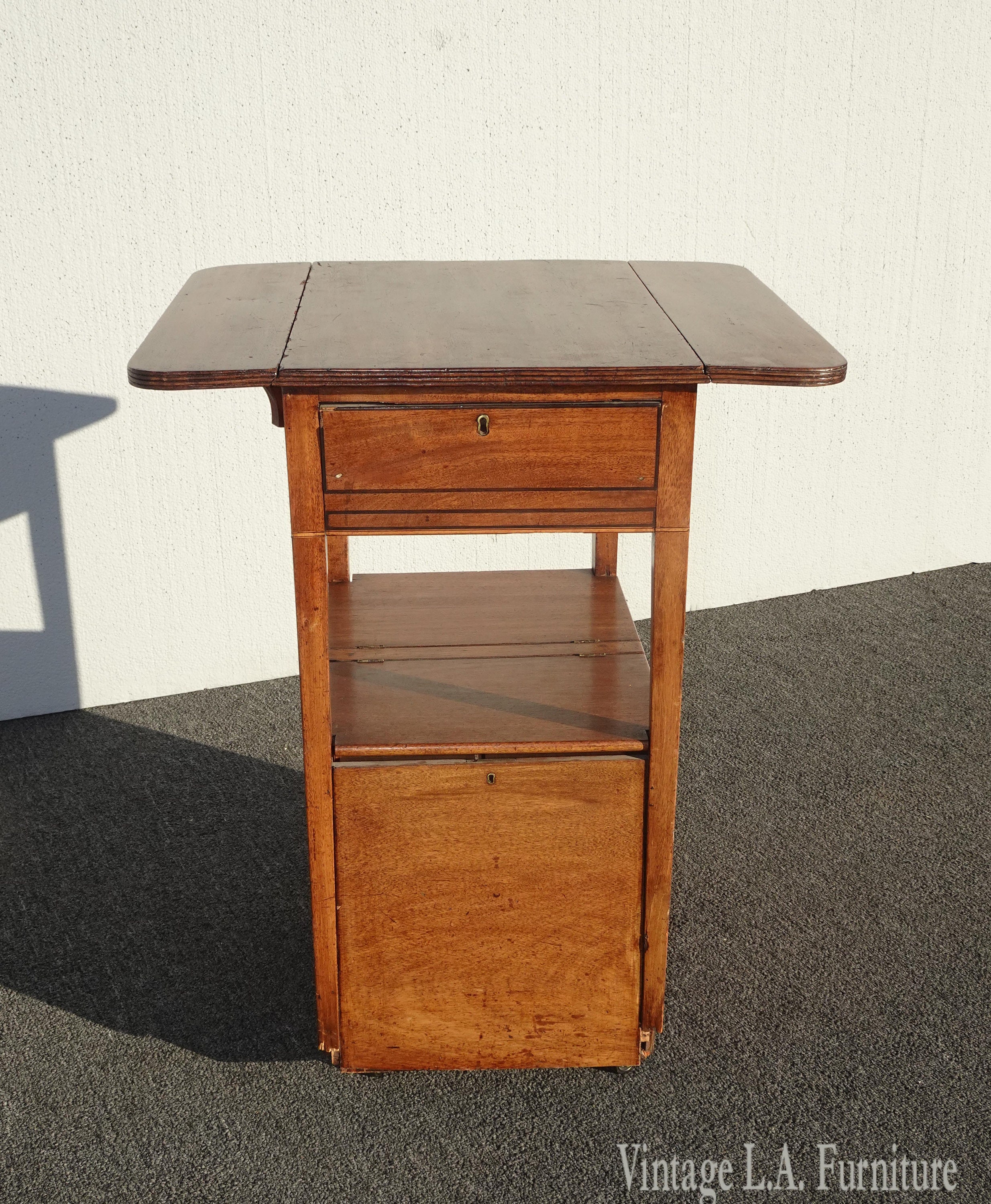 Antique French Country Farmhouse File Cabinet Dropleaf Side Table on Castors