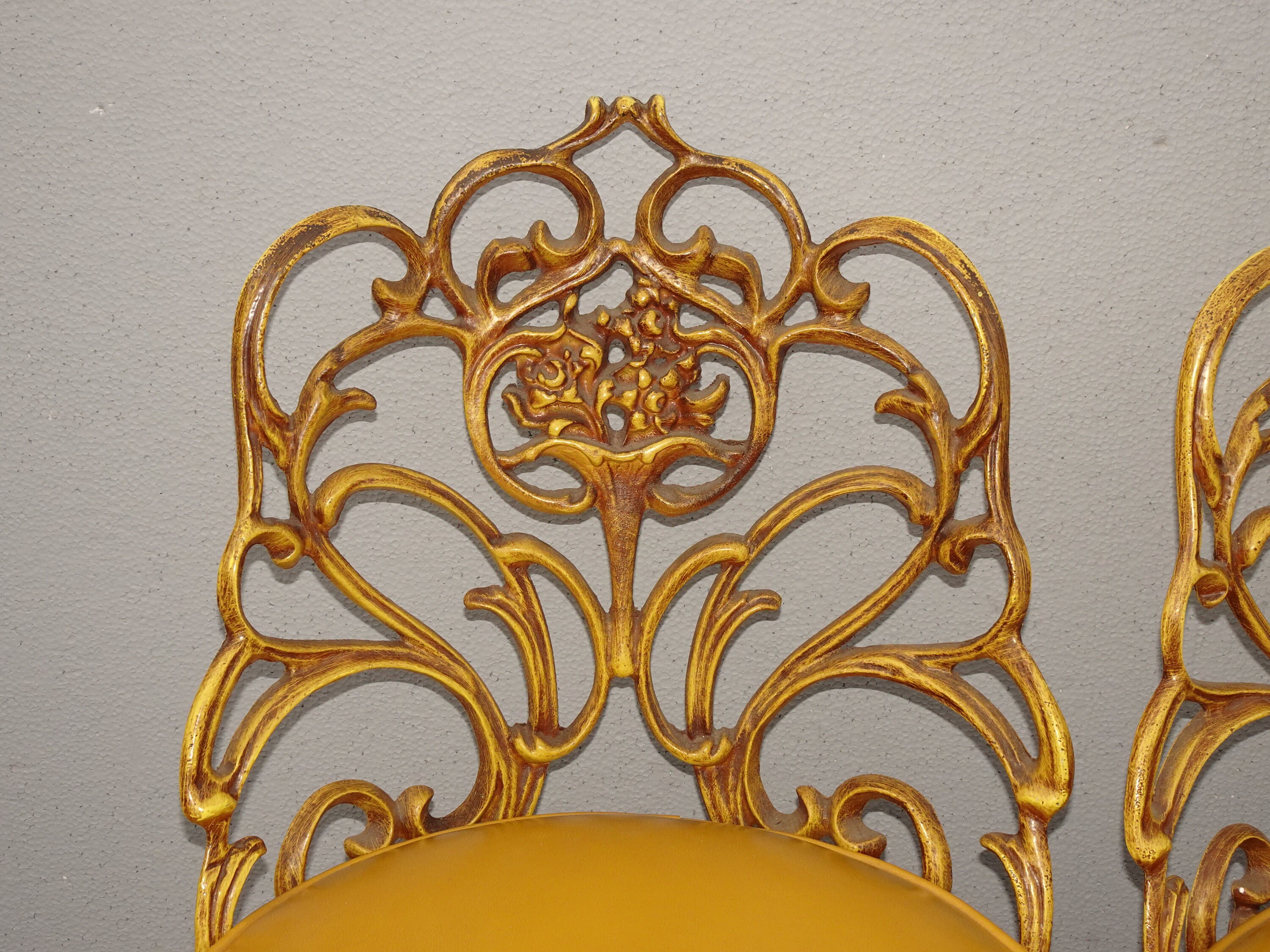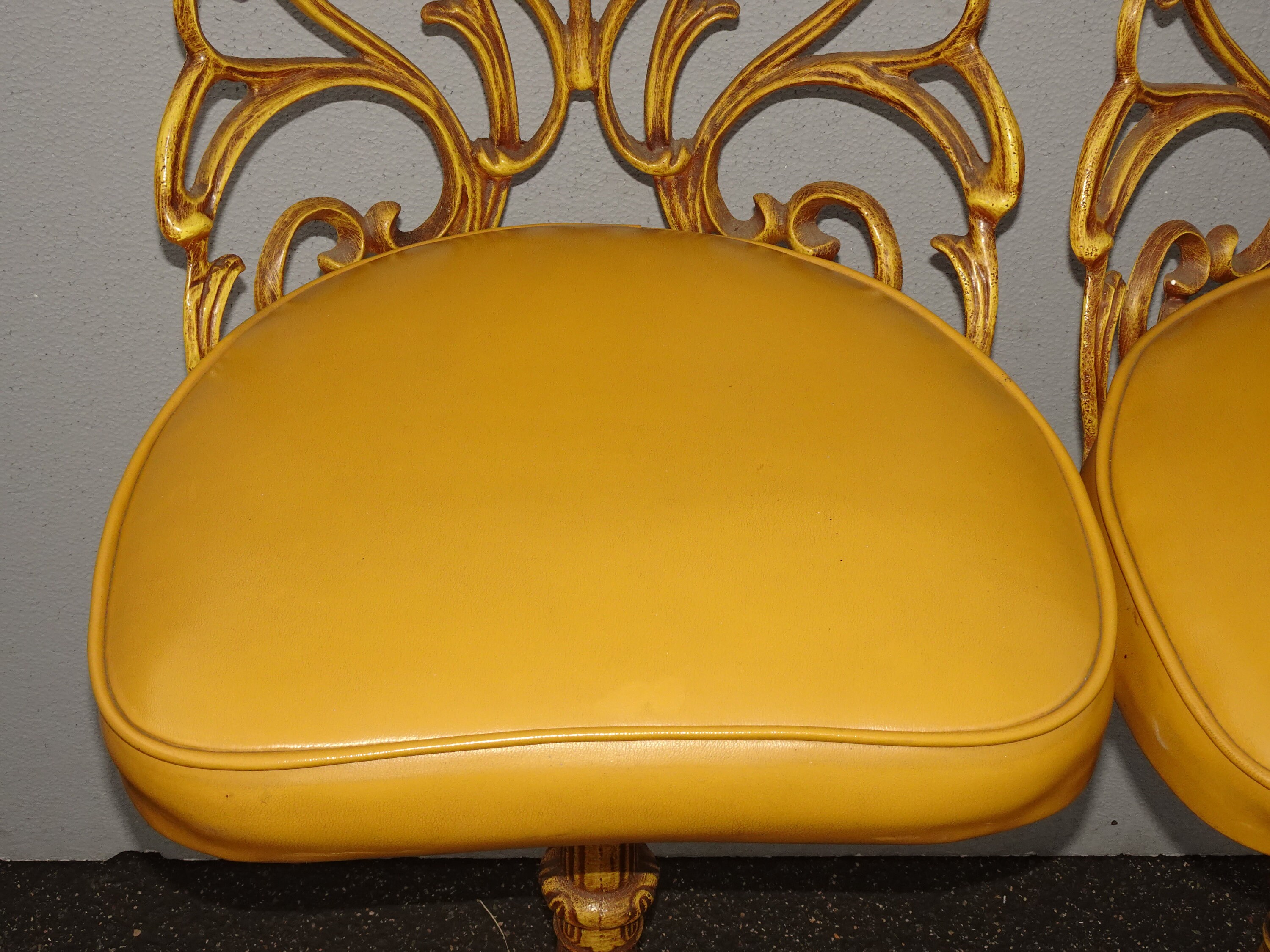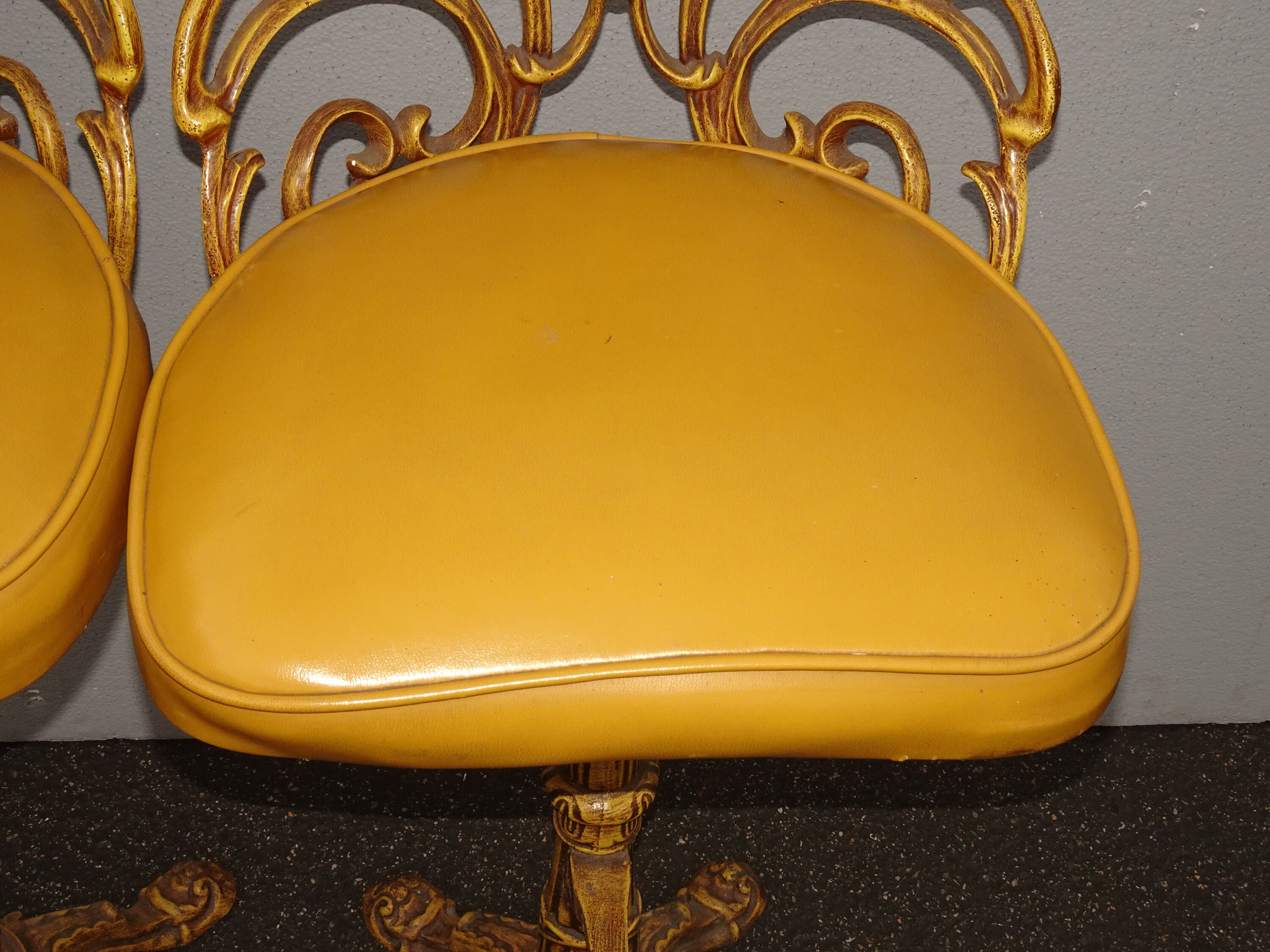 Pair of Vintage Spanish Style Cast Iron Gold Yellow Ornate Scrolled Bar Stools