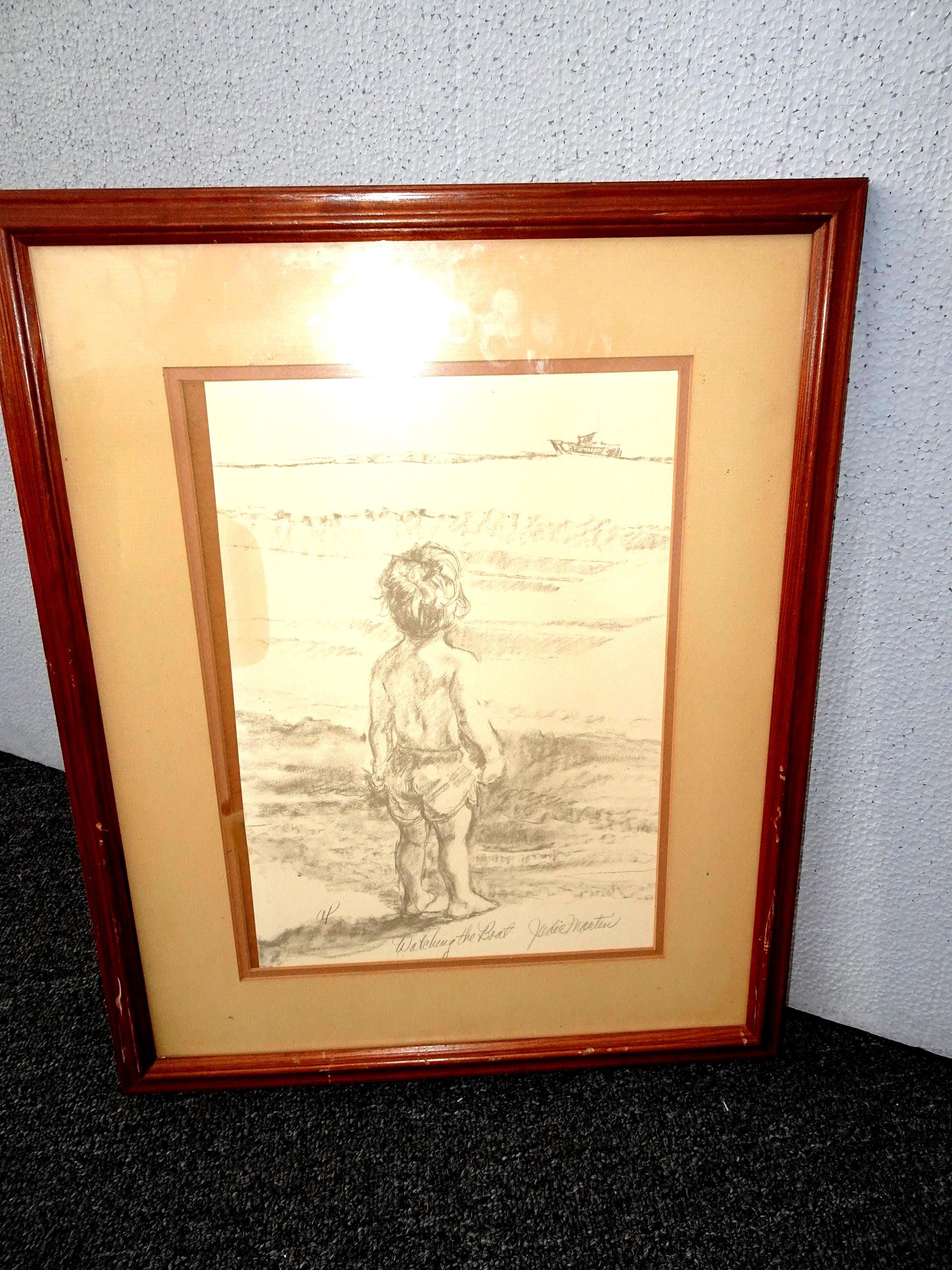 Vintage Judie Martin Picture of Child 'Watching the Boat'