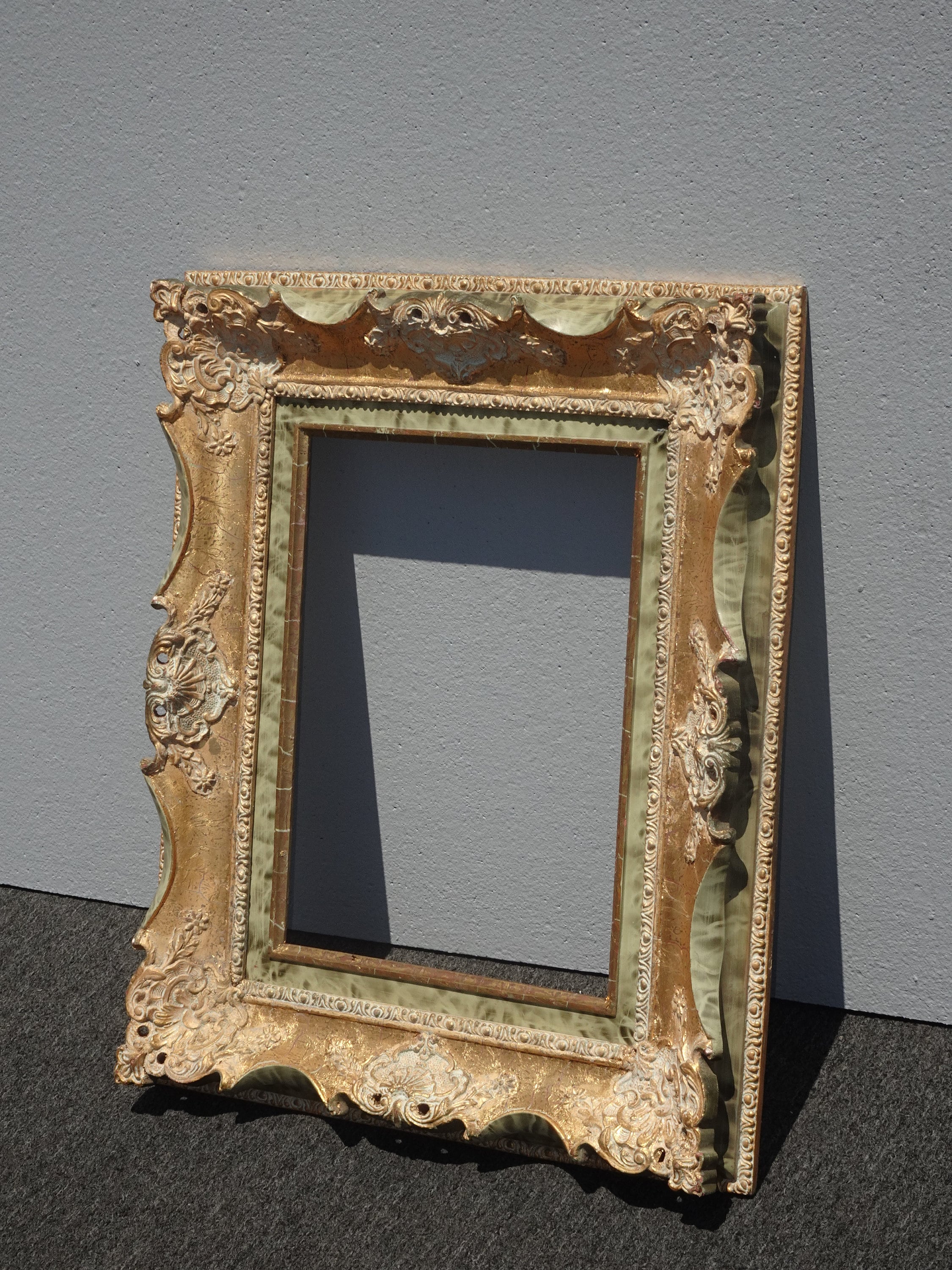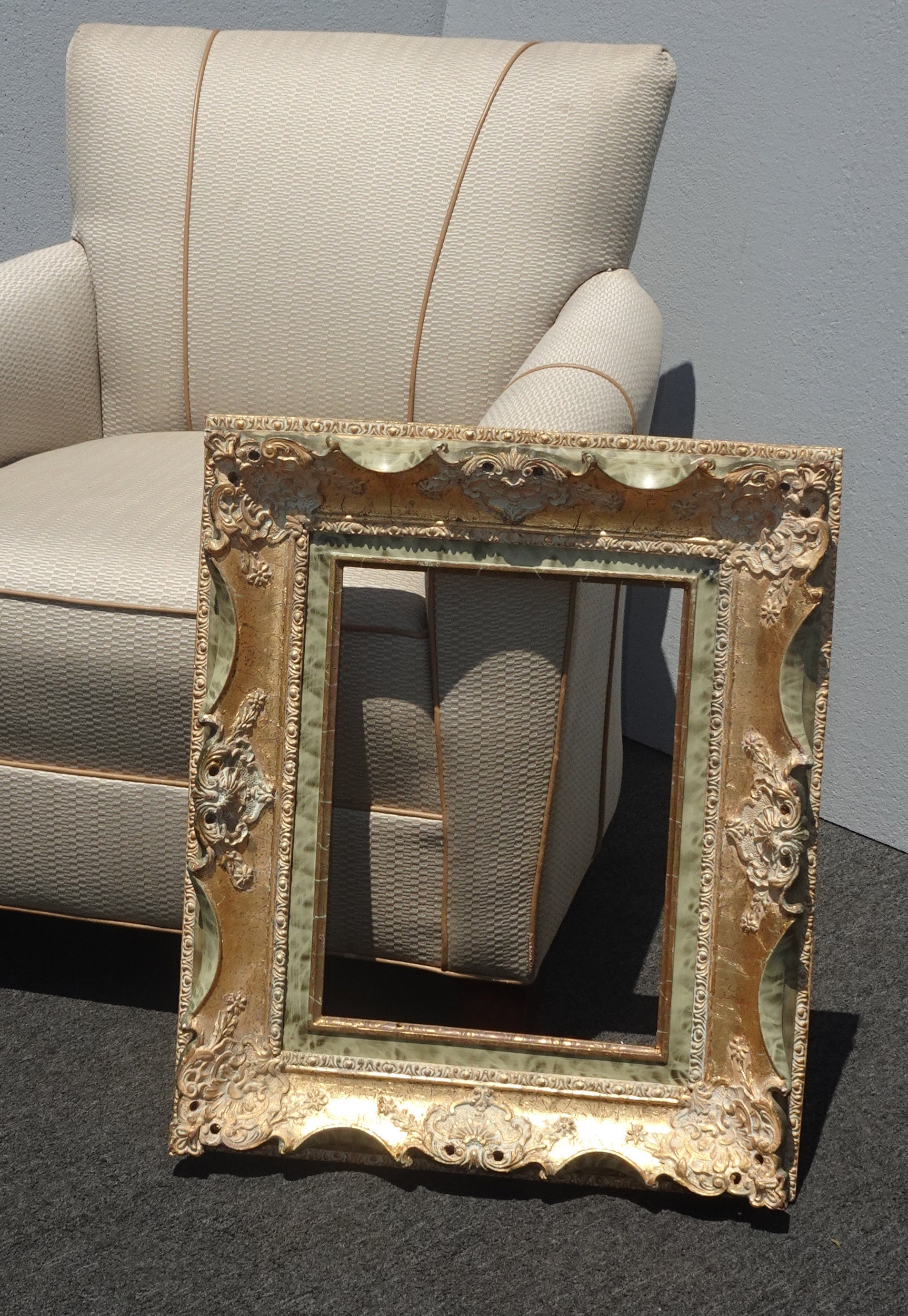 Vintage French Provincial Ornate Rococo Gold Green Picture Frame
